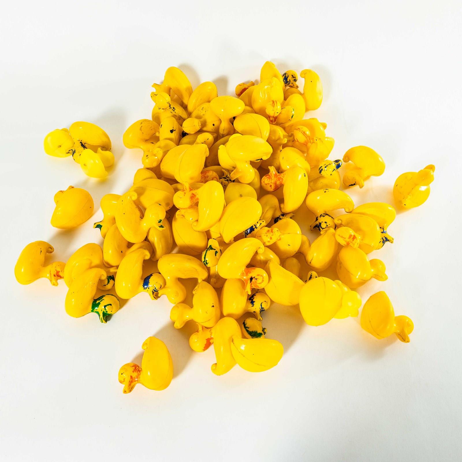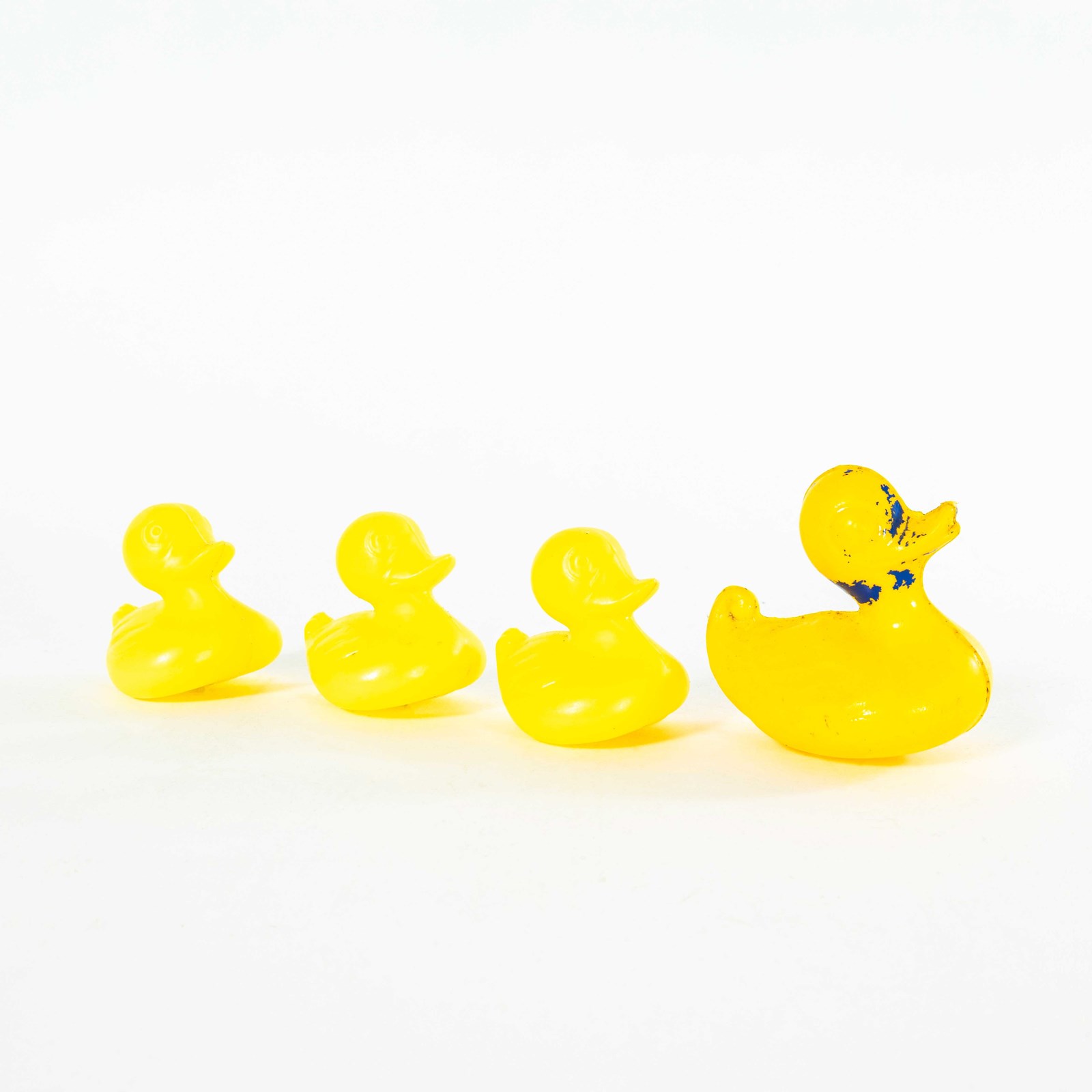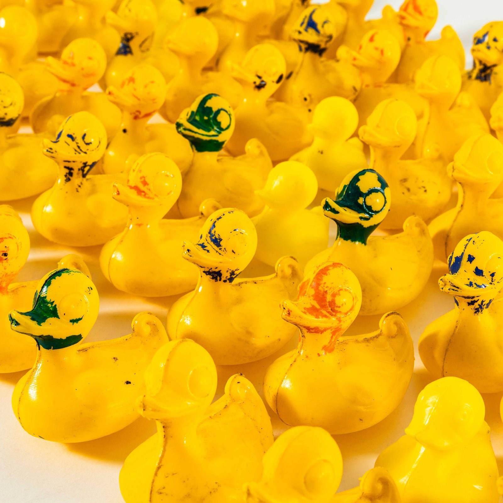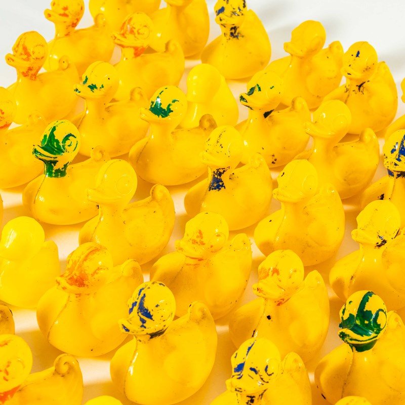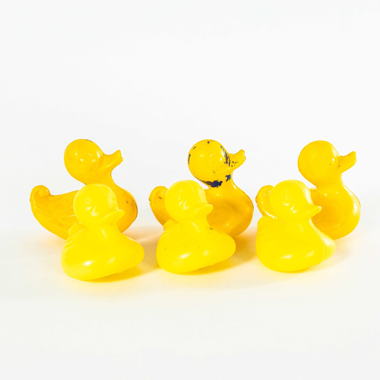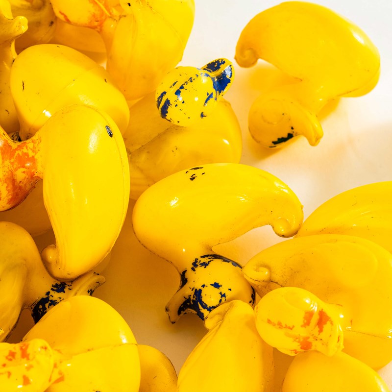 Classic fairground ducks that were placed on a scenic background and used as shooting targets with air pistols. The ducks are colour marked, each colour representing a target value with the corresponding prize. They probably float, just in case that’s the intended use, they certainly don’t have holes from their target days. All ducks looking for a new safe home to retire to. Sizes vary slightly, Smallest Duck: L7 W6 H7, Largest Duck: L9 W7 H9.