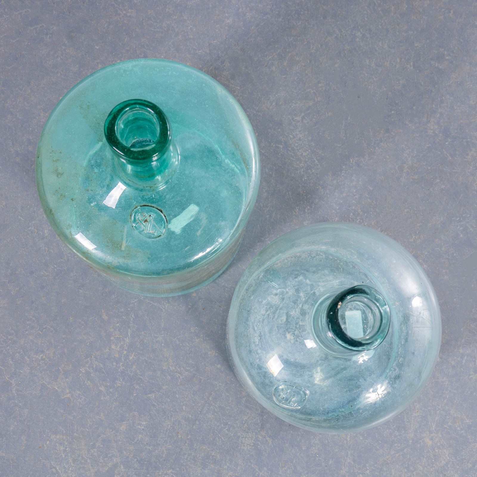 Vintage French Aqua & Clear Glass Demijohns - Pair