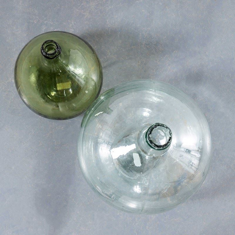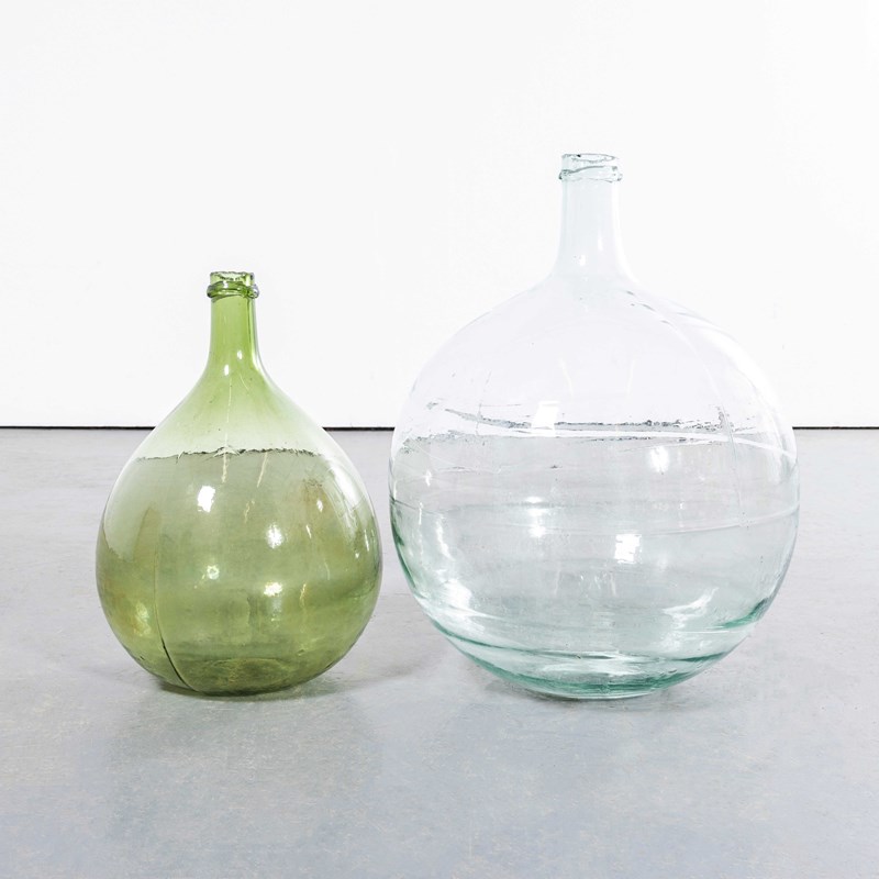Vintage French Clear And Green Glass Demijohns – Pair.