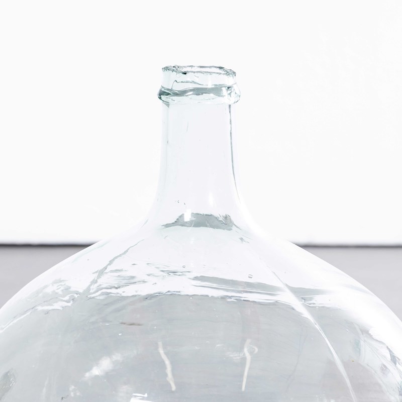 A pair of mouth blown glass demijohns used as a traditional containers mainly for wine storage and transport. These demijohns have been carefully cleaned. Demijohn Dimensions. Smallest: L26 W26 H34, Largest: L35 W35 H45