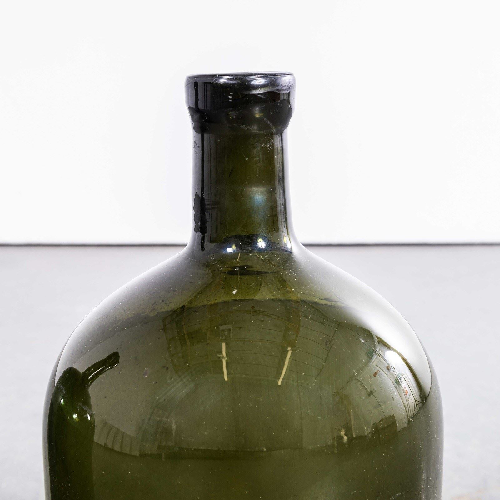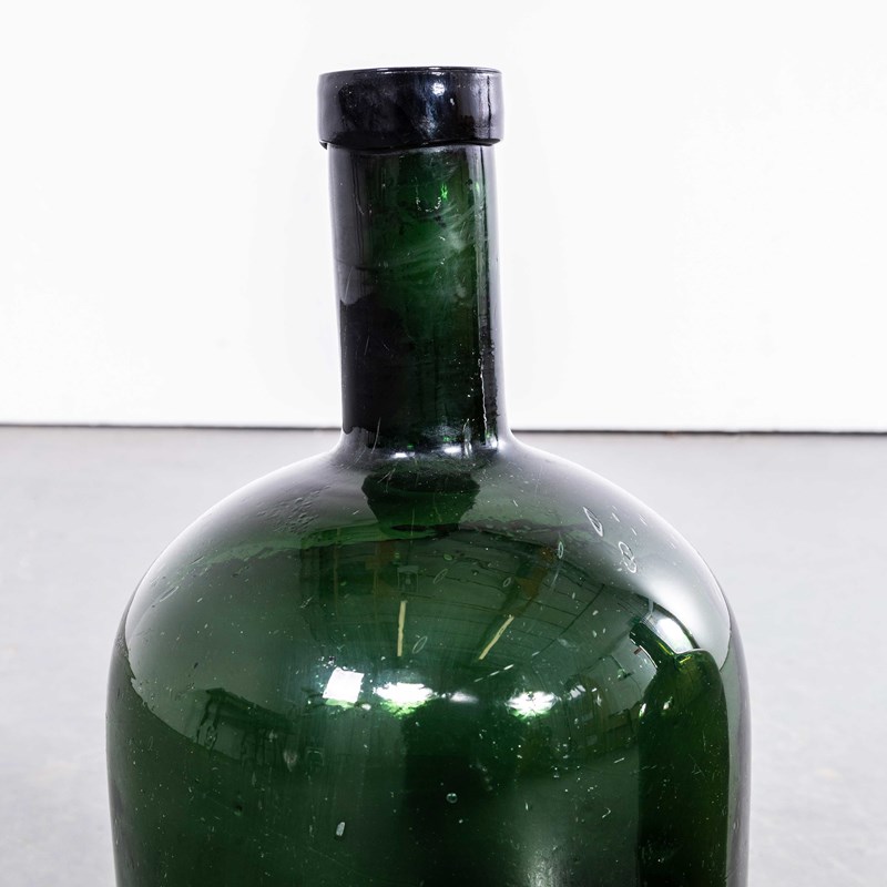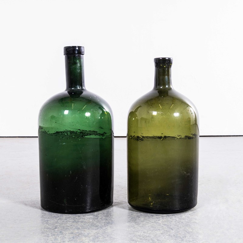 Vintage French Dark Green & Emerald Glass Demijohns – Pair. A pair of mouth blown glass demijohns used as a traditional containers mainly for wine storage and transport. These demijohns have been carefully cleaned. Demijohn Dimensions. Smallest: L17 W17 H36, Largest: L19 W19 H40