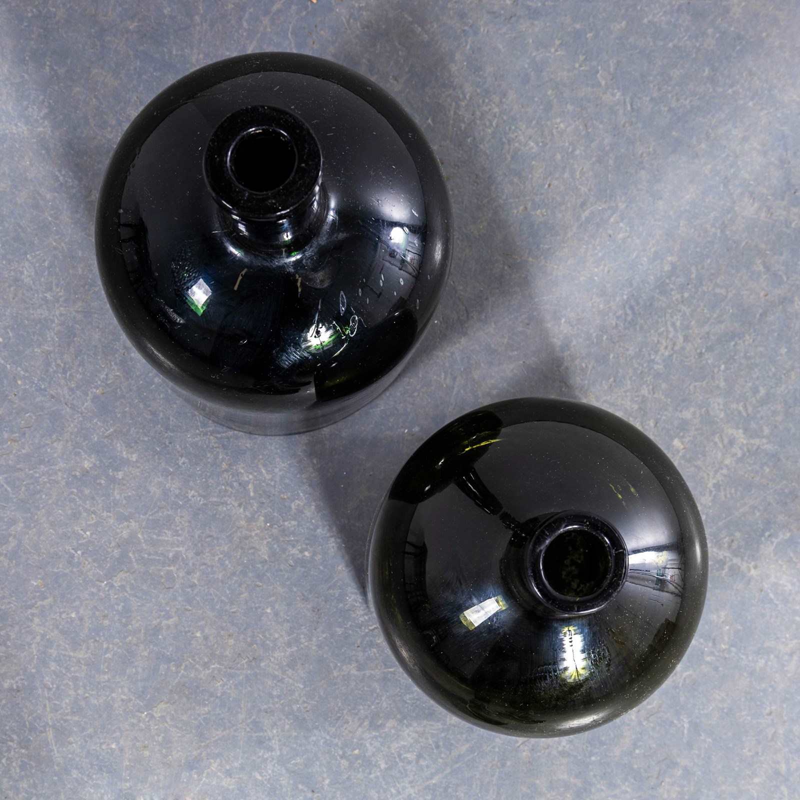 Vintage French Dark Green & Emerald Glass Demijohns - Pair