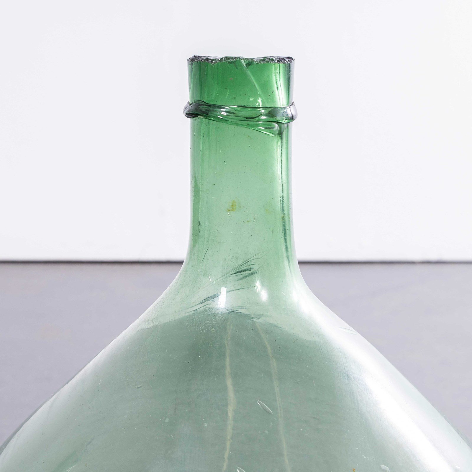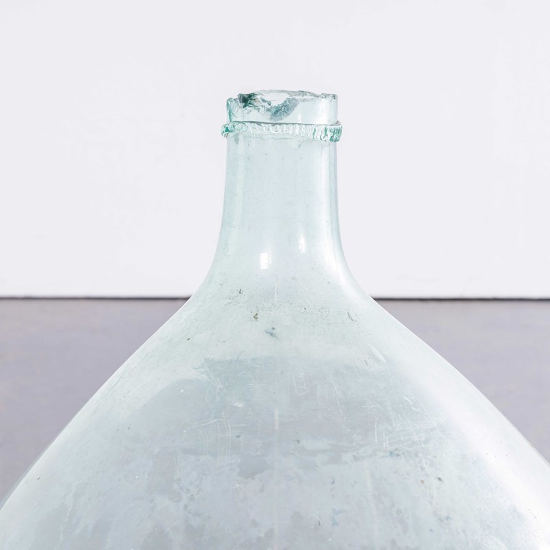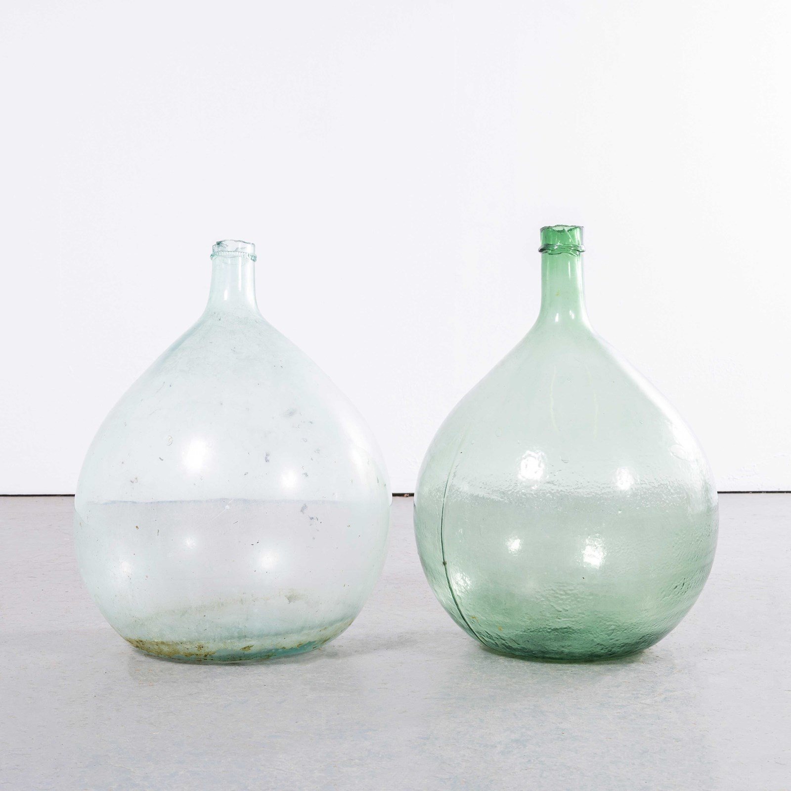 Vintage French Round Clear Blue & Green Glass Demijohns – Pair. A pair of mouth blown glass demijohns used as a traditional containers mainly for wine storage and transport. These demijohns have been carefully cleaned. Demijohn Dimensions: L38 W38 H50