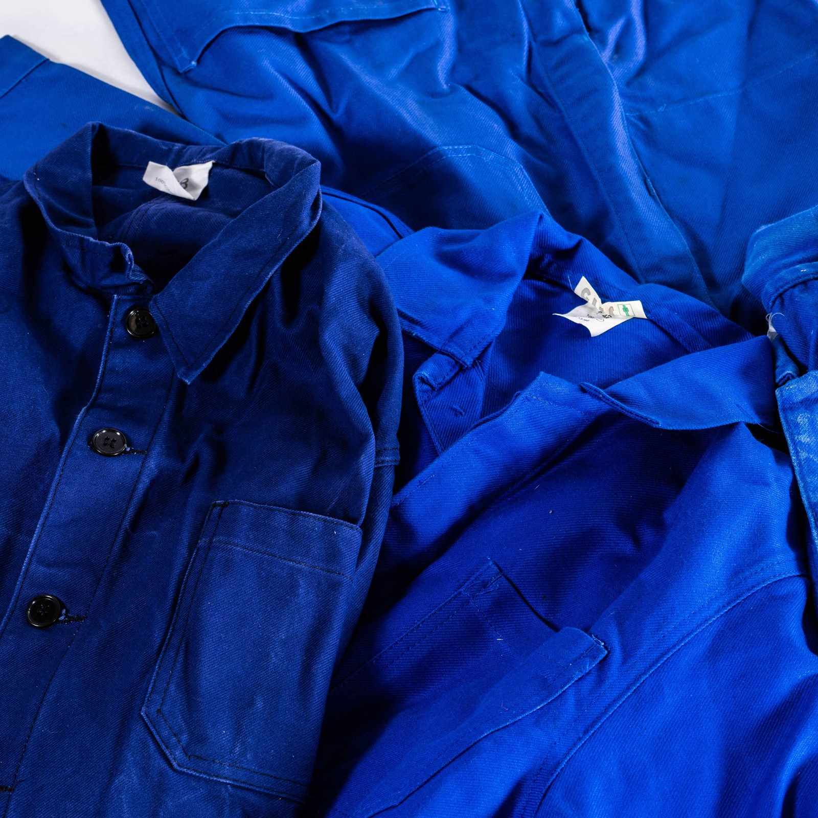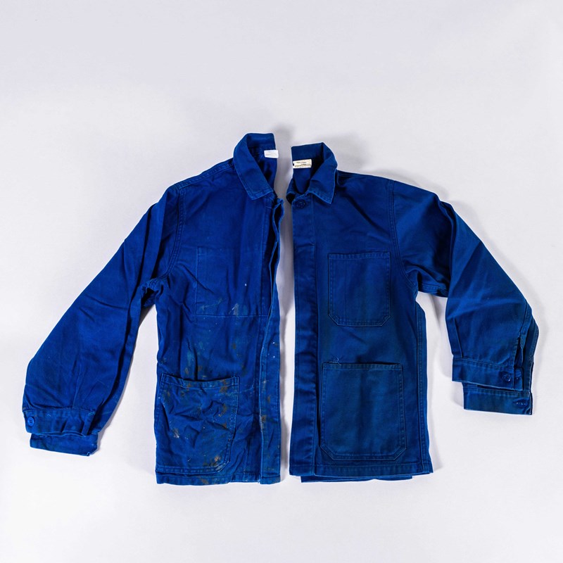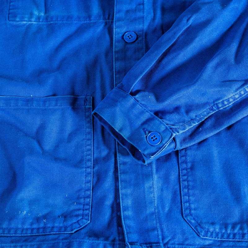 Adolphe Lafont is credited with the creation of the first classic French workwear jacket, in the mid 19th Century. The 'Bleu de Travail' was born. A basic blue cotton drill jacket, unlined with a simple shirt collar, heavy duty front buttons, a couple of large front pockets, and a single breast pocket. The jacket is rooted in the French industrial revolution and has a strong symbolism of solidarity in France. We collect our stock all over the markets of France, most are well used and loved and all are in good condition. Occasionally we have new old stock, never worn and with labels. Average chest width when buttoned and laid flat: 43 cm. Selection is one random jacket.