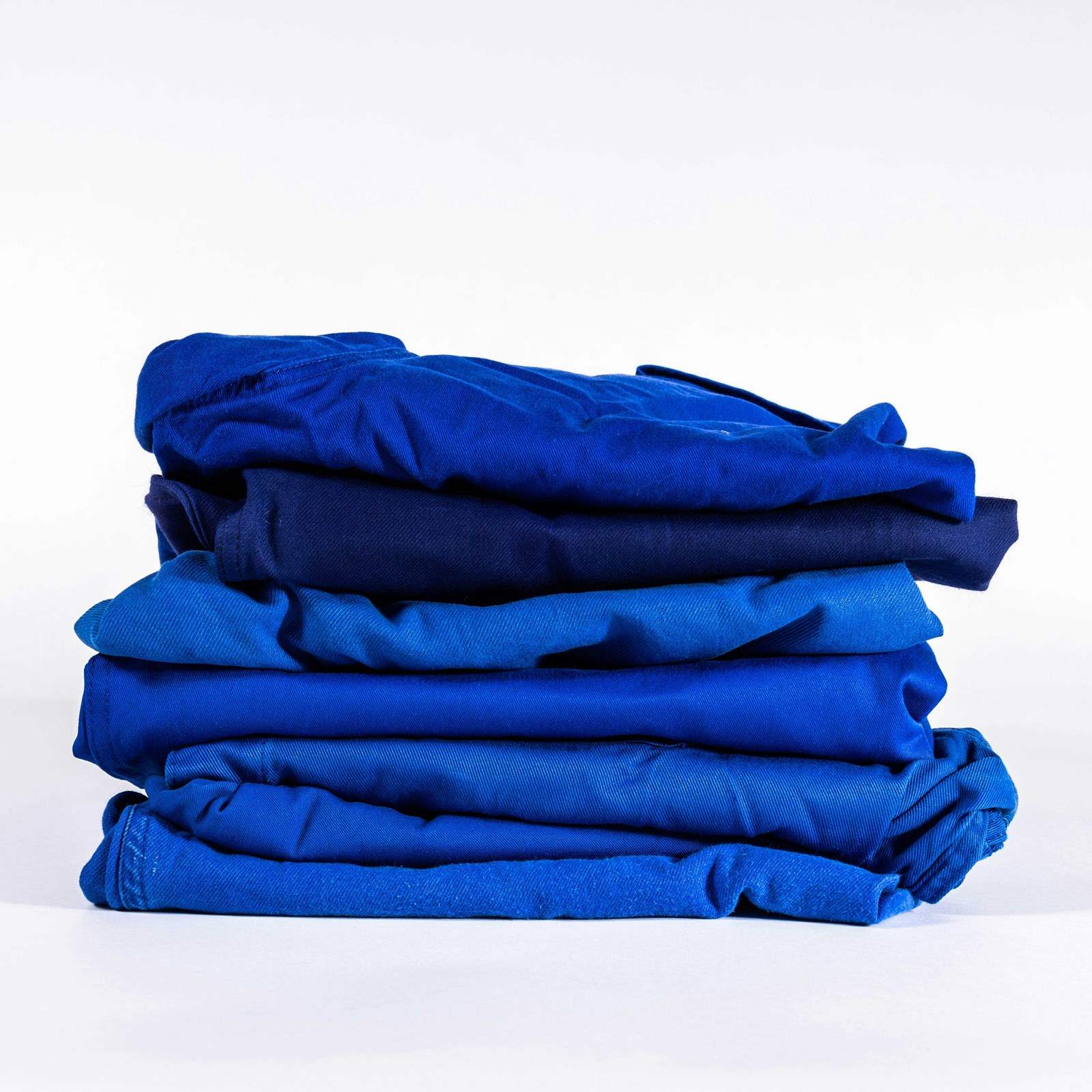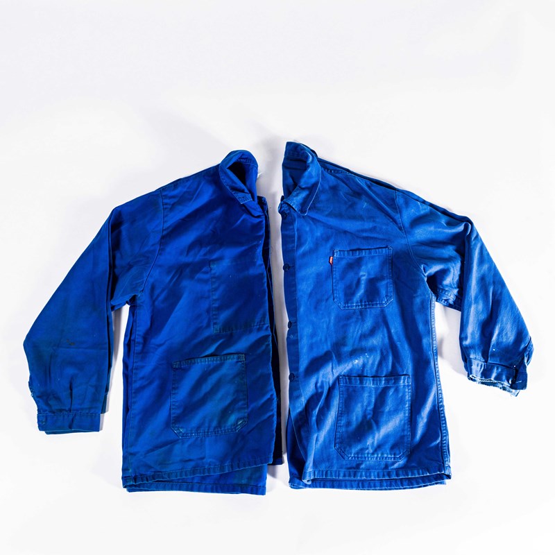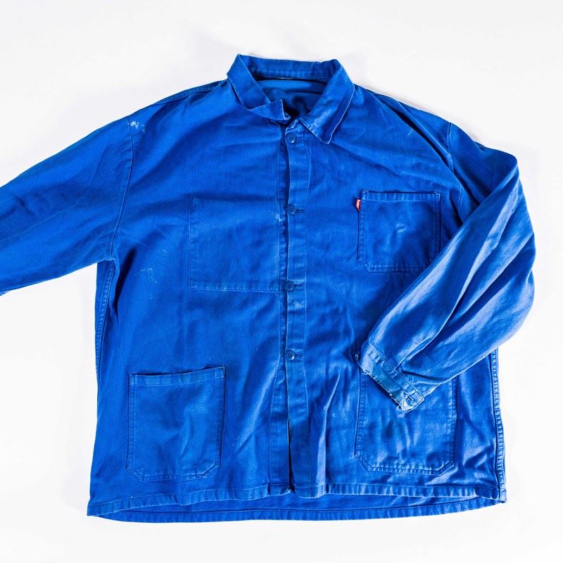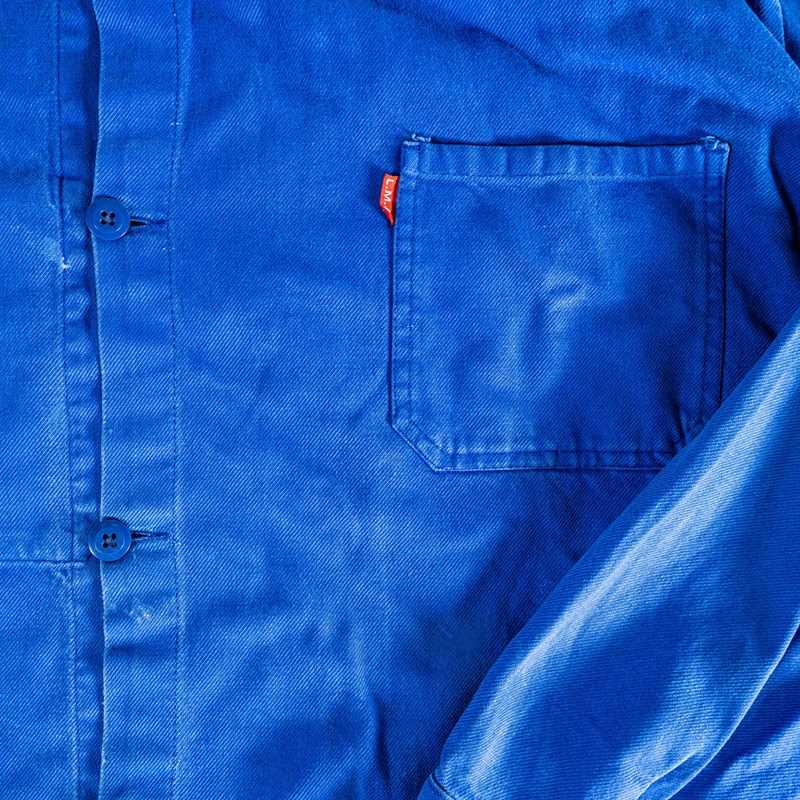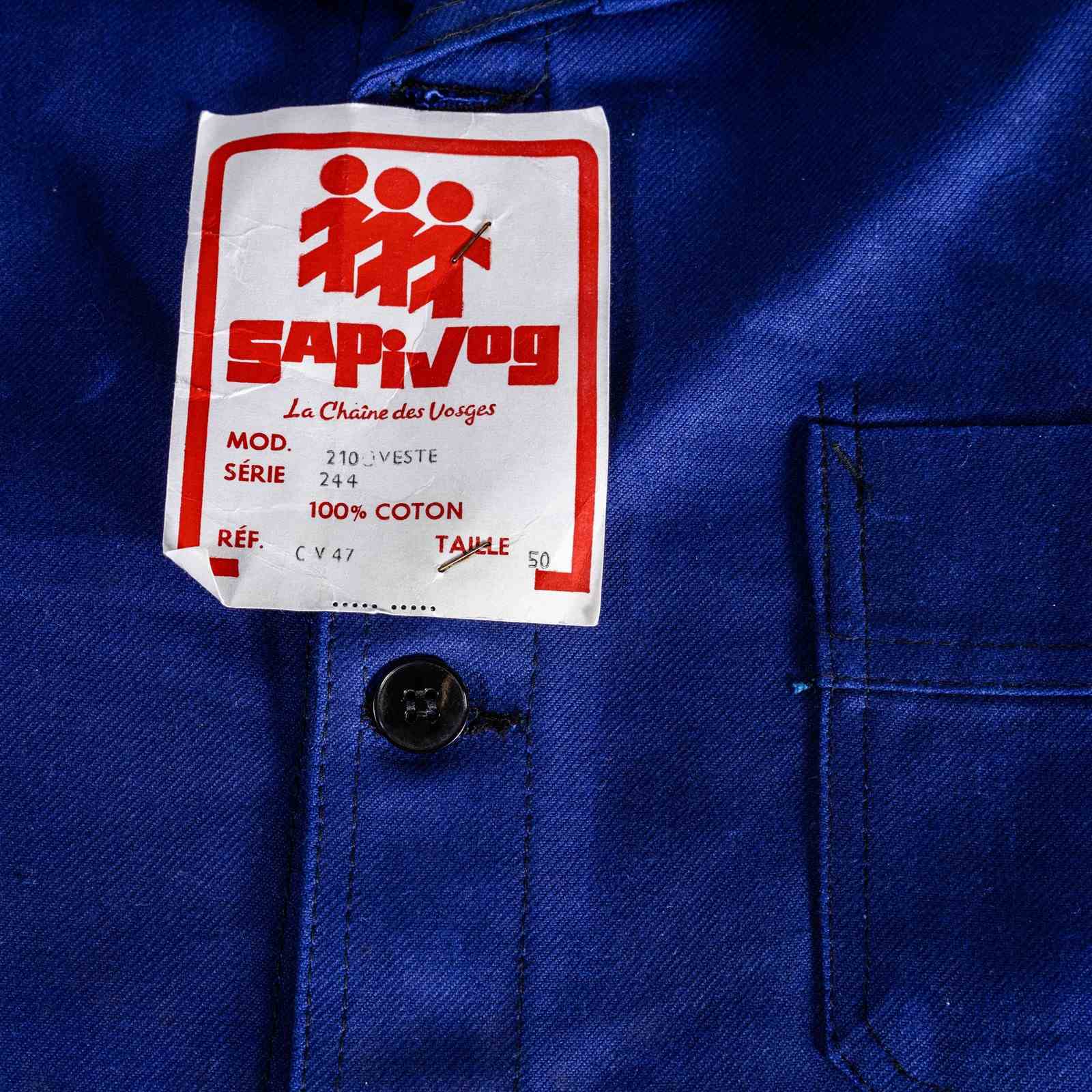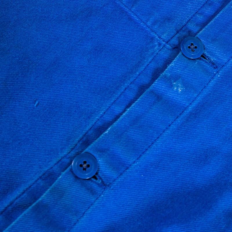Vintage French Workwear Jackets Blue Jackets (Large). Adolphe Lafont is credited with the creation of the first classic French workwear jacket, in the mid 19th Century. The 'Bleu de Travail' was born. A basic blue cotton drill jacket, unlined with a simple shirt collar, heavy duty front buttons, a couple of large front pockets, and a single breast pocket. The jacket is rooted in the French industrial revolution and has a strong symbolism of solidarity in France. We collect our stock all over the markets of France, most are well used and loved and all are in good condition. Occasionally we have new old stock, never worn and with labels. Average chest width when buttoned and laid flat: 68 cm. Selection is one random jacket.