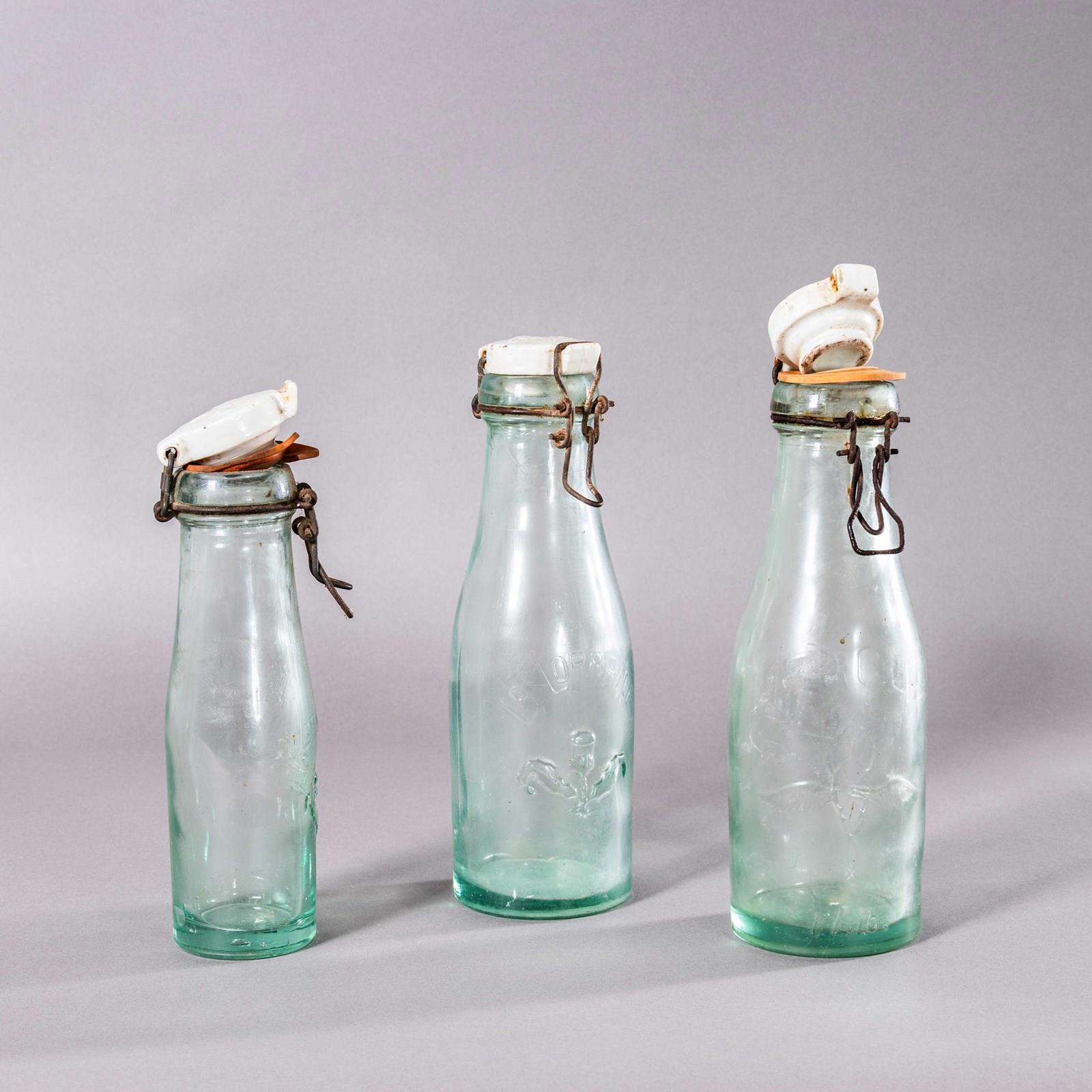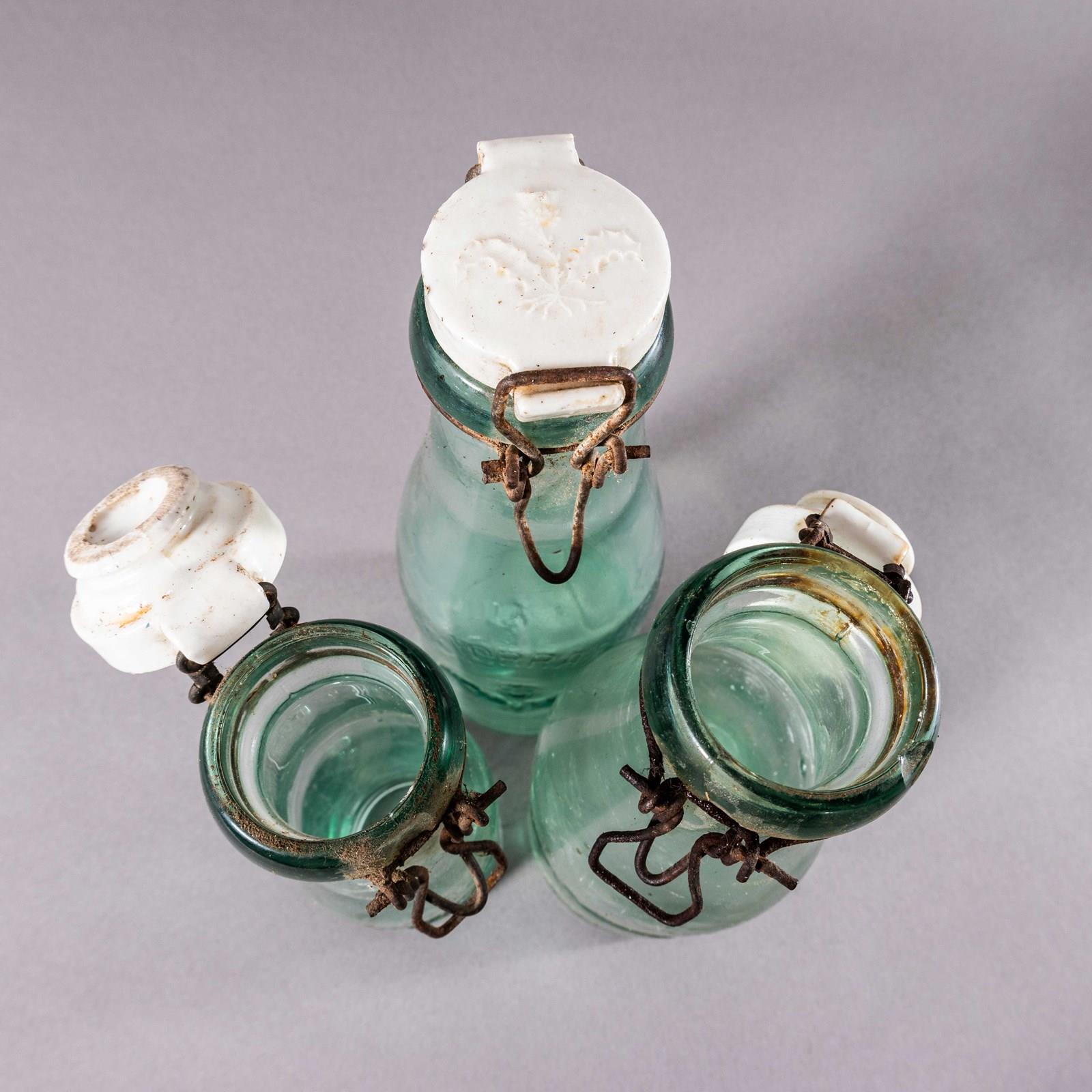 Vintage Set Of French Glass Bottles With Caps – Set Of Three.