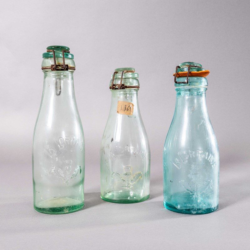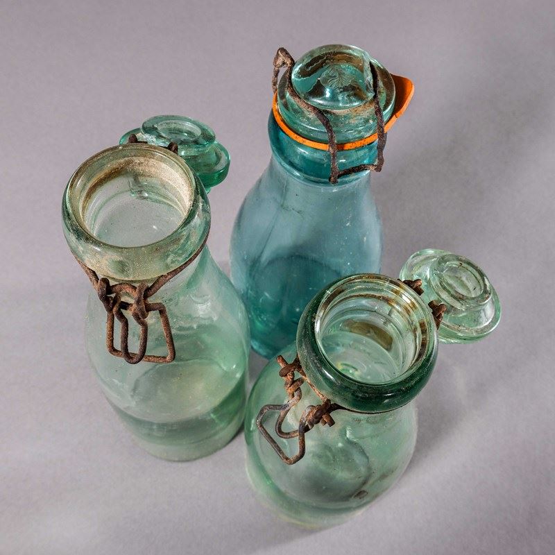 Vintage Set Of French Glass Bottles With Caps – Set Of Three.