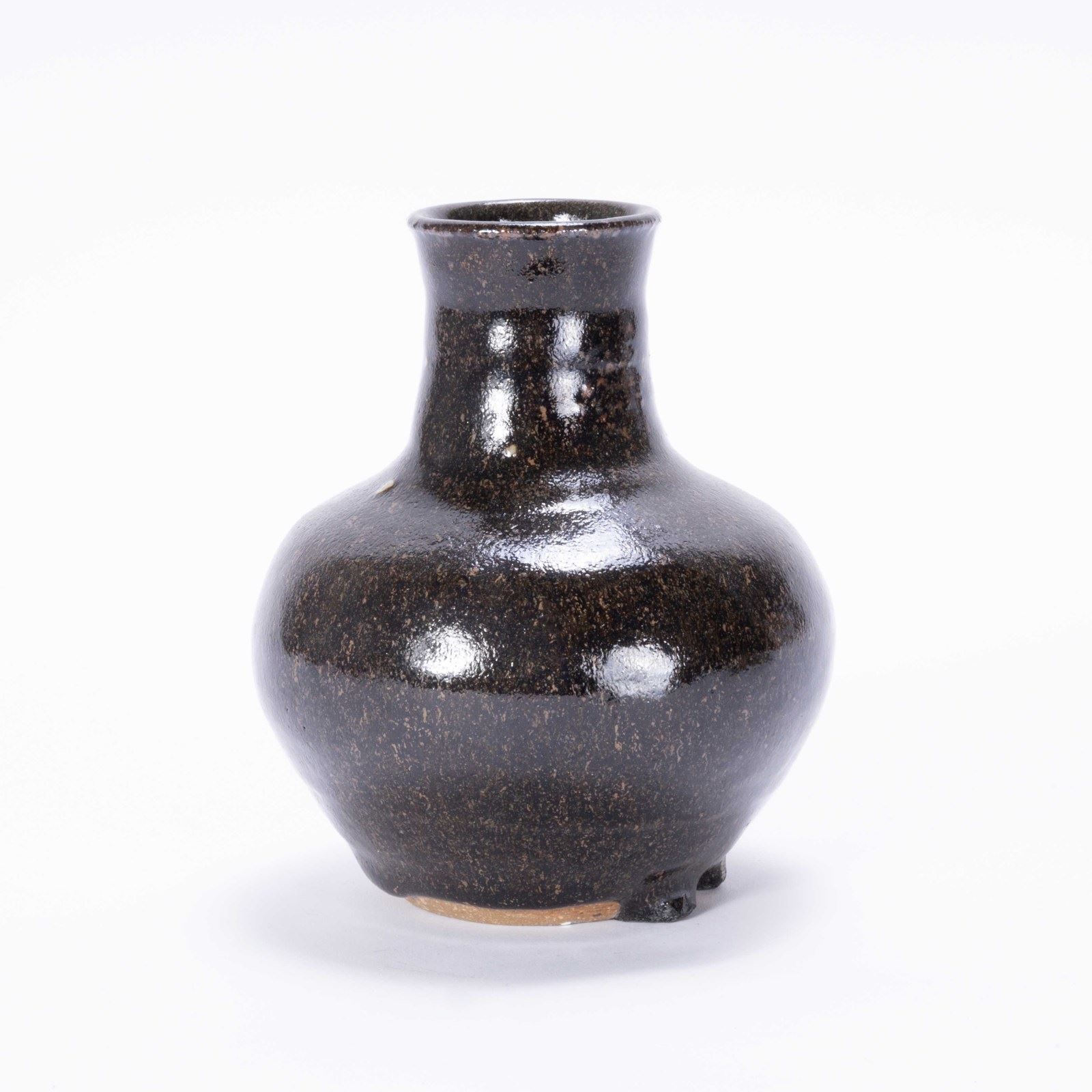 Vintage Studio Ceramics Organic Stem Vase - Dark Earth Glaze.