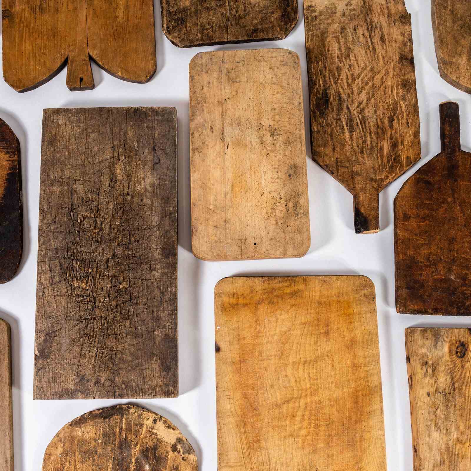 Sourced from Hungarian and Romanian street markets, crudely made and well used small chopping boards made mainly in beech and birch wood. Listing is for one randomly selected board.