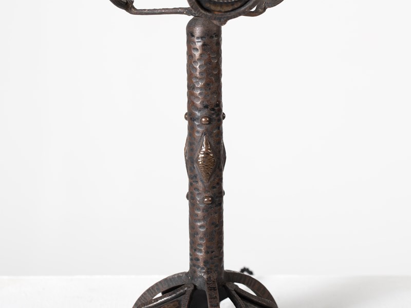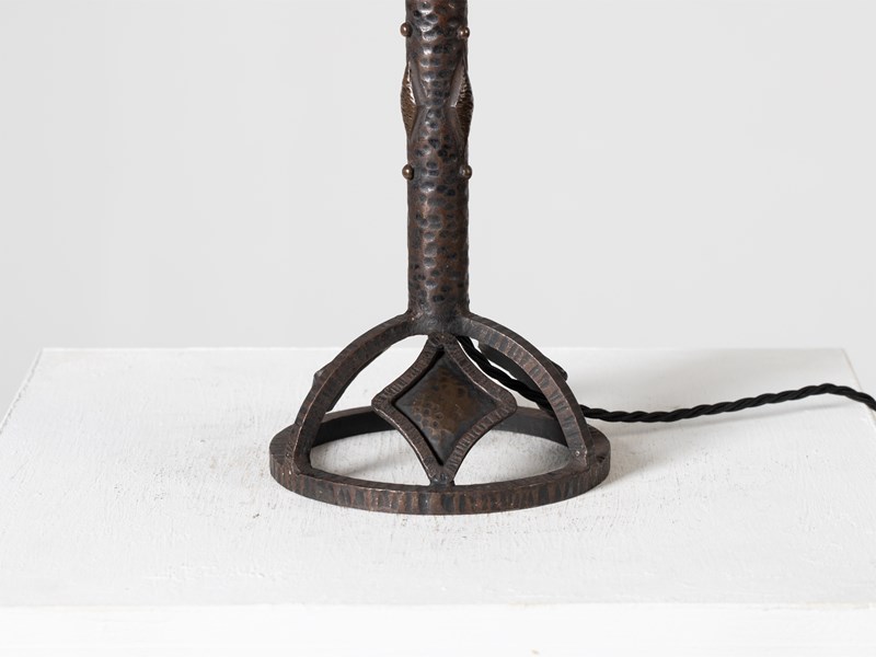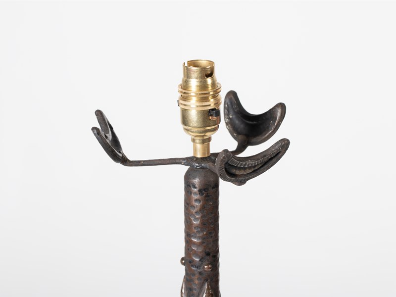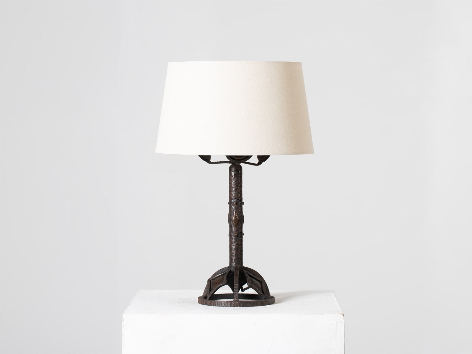 An Art Deco iron table lamp in the manner of Raymond Subes. French, c. 1930.