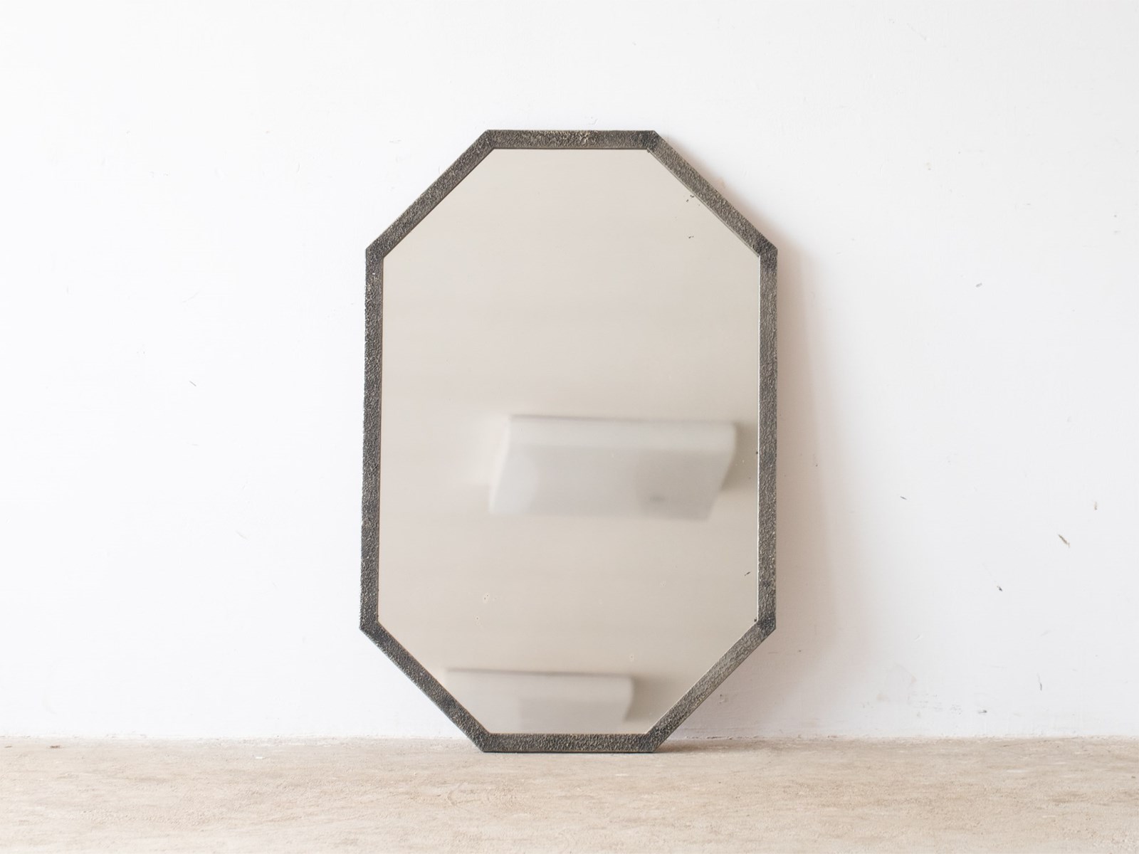 An Art Deco octagonal mirror with textured frame. French, c. 1930s.