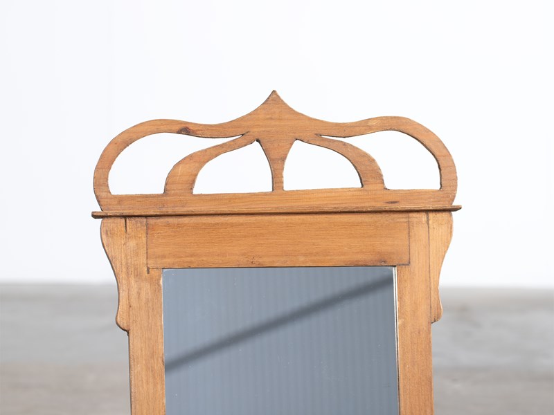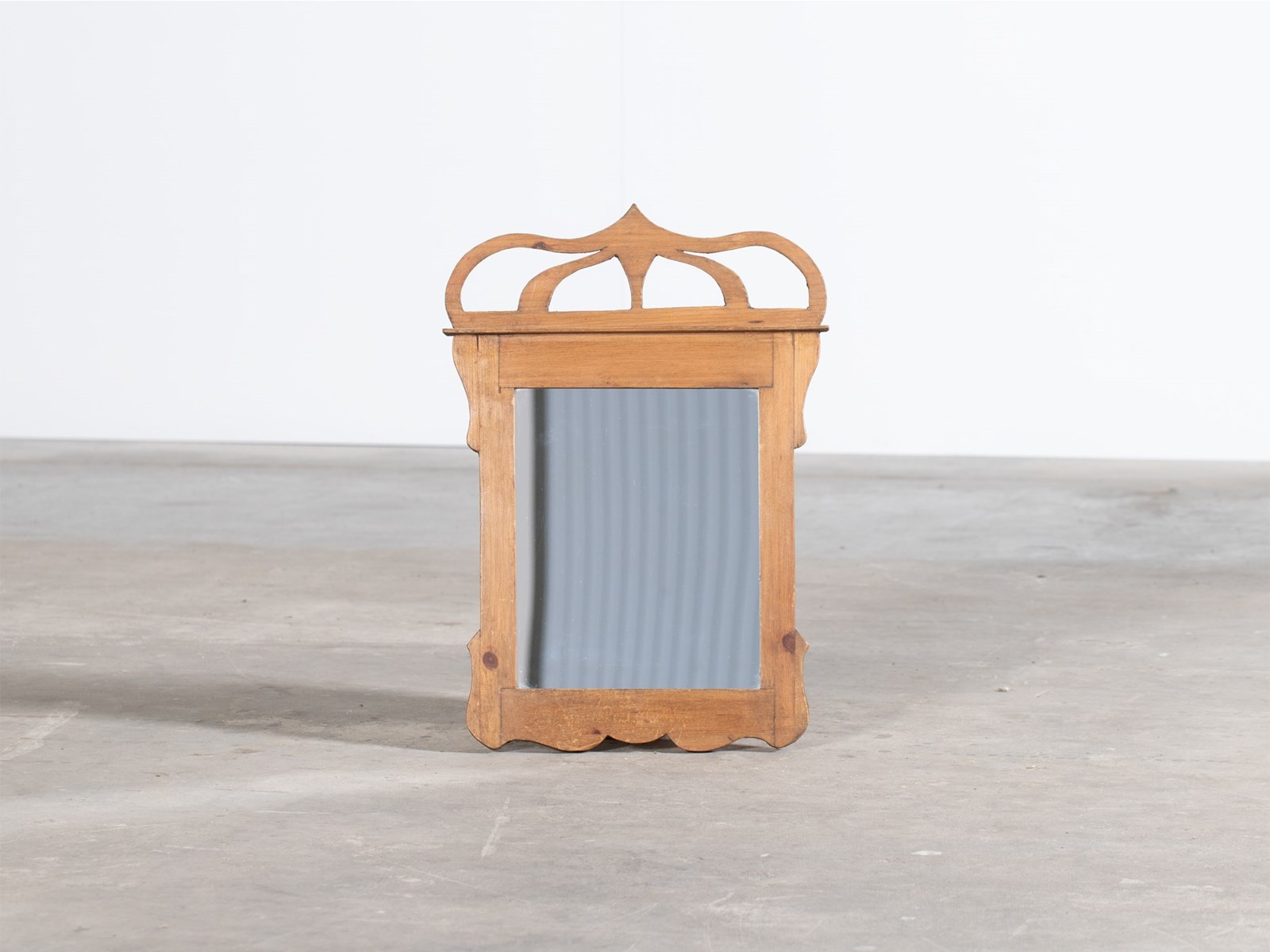 An Arts & Crafts pine fretwork mirror. English, early 20C.