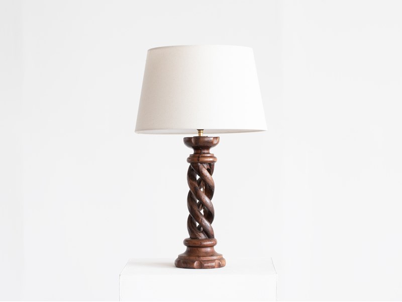 A carved barley twist candlestick table lamp. French, mid-late 20C.
