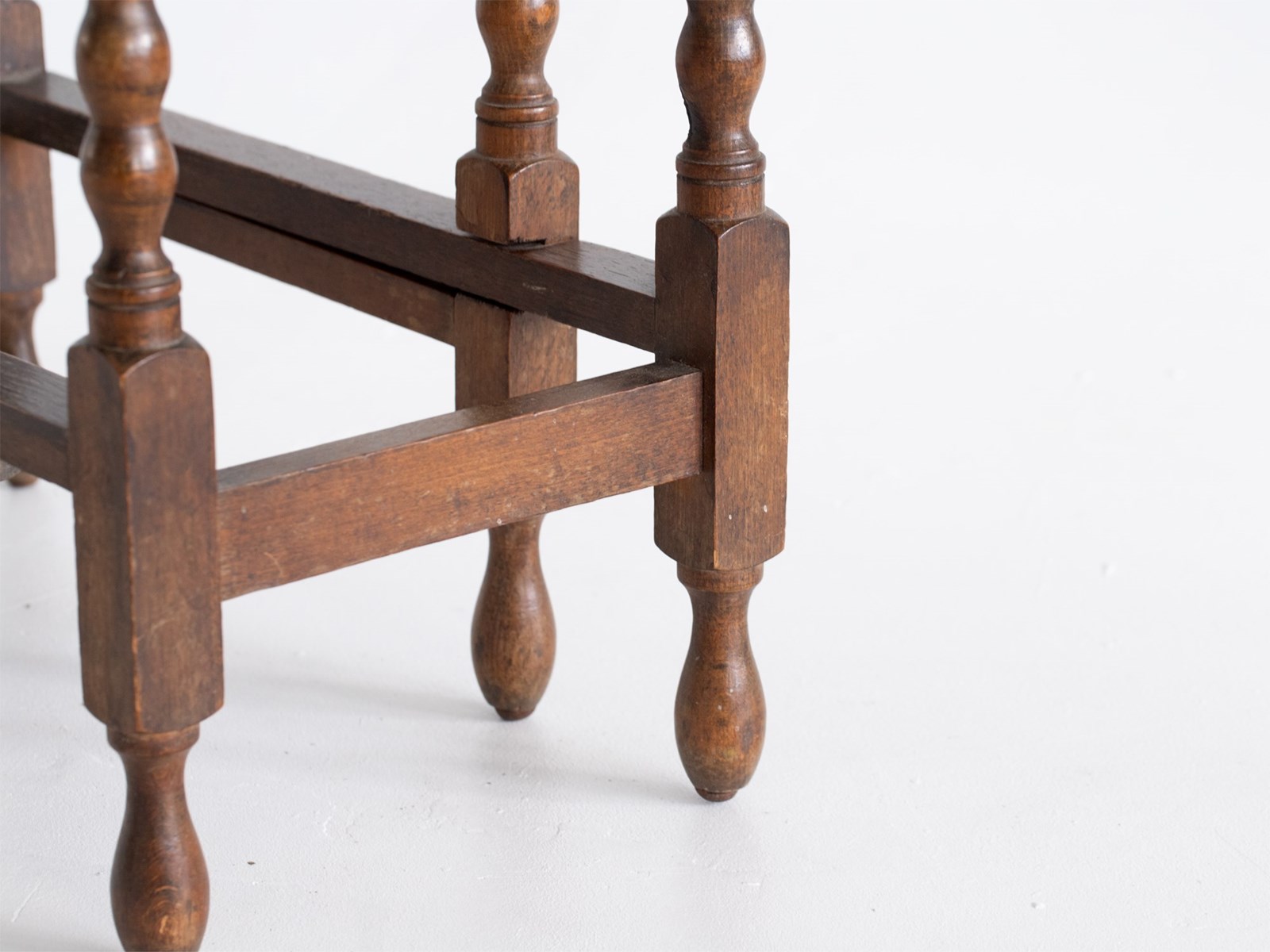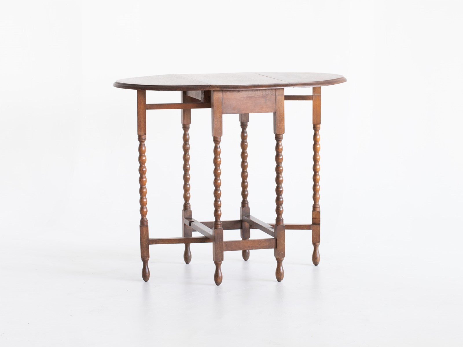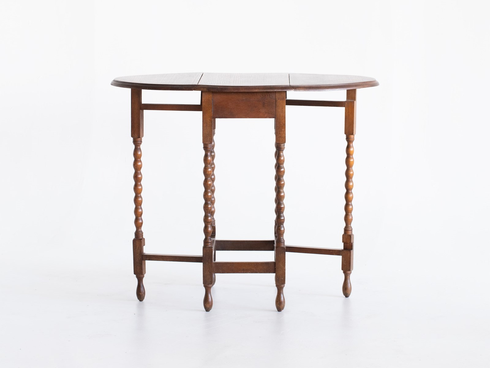 An oak gateleg table raised on six bobbin-turned supports. French, c. 1950s.