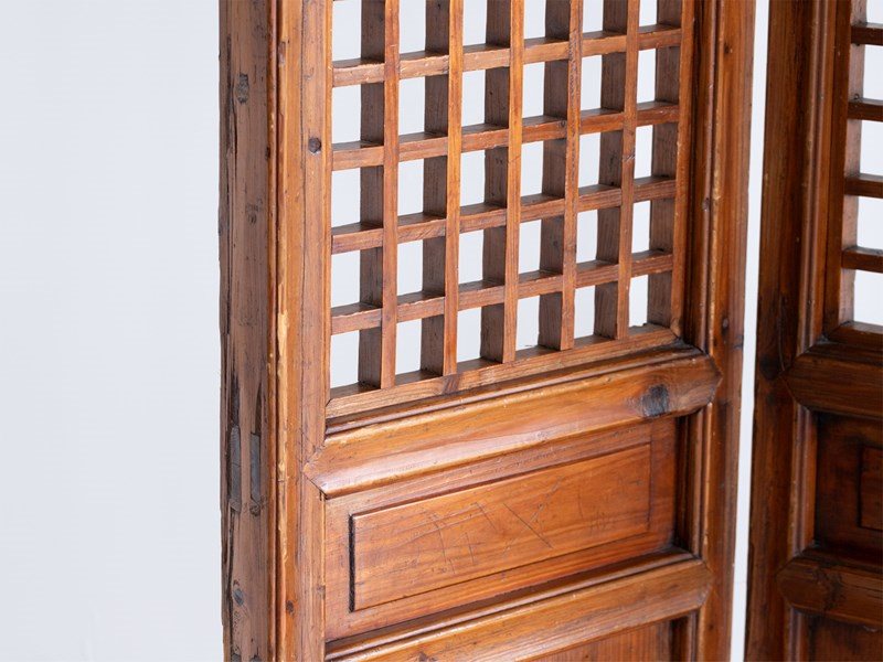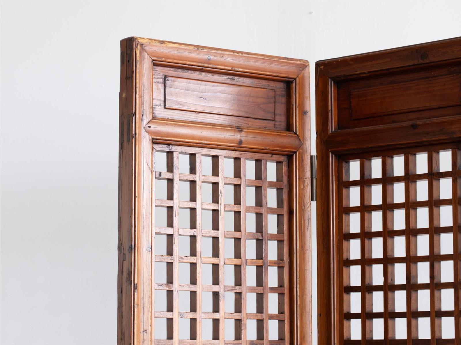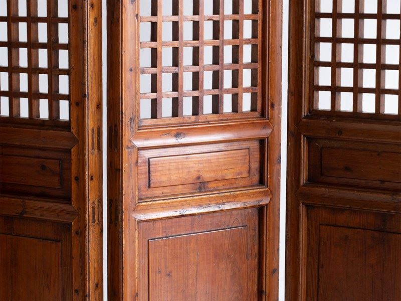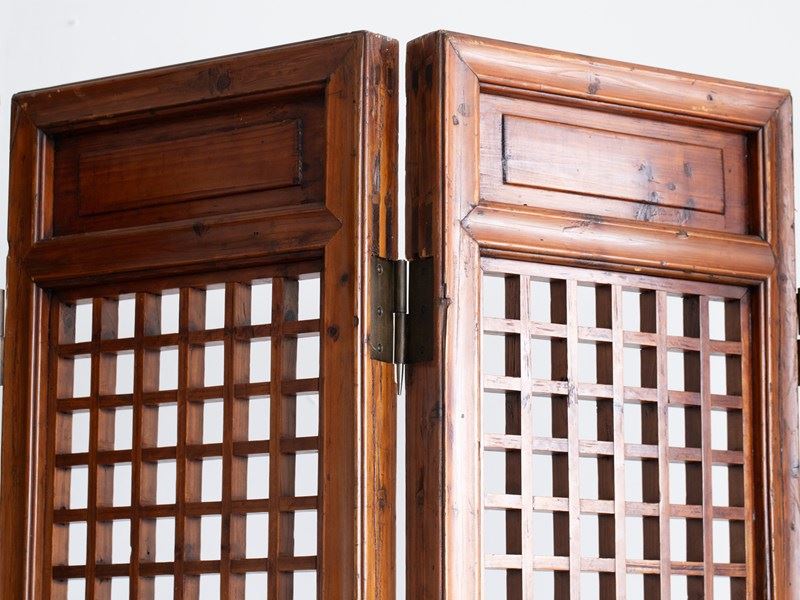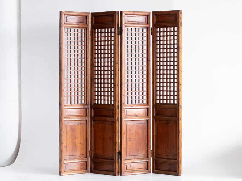 A monumental four-panelled latticework screen or room divider. Chinese, 20C.