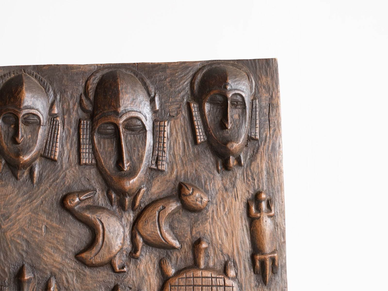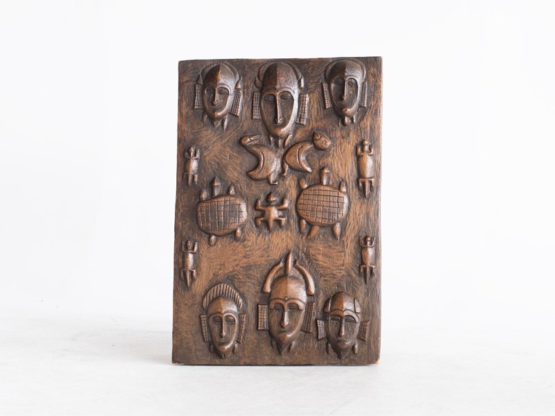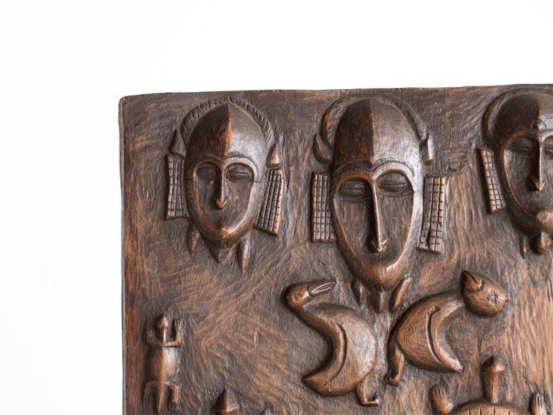 A naïvely carved granary door originating from the Dogon people of Mali, early-mid 20C.