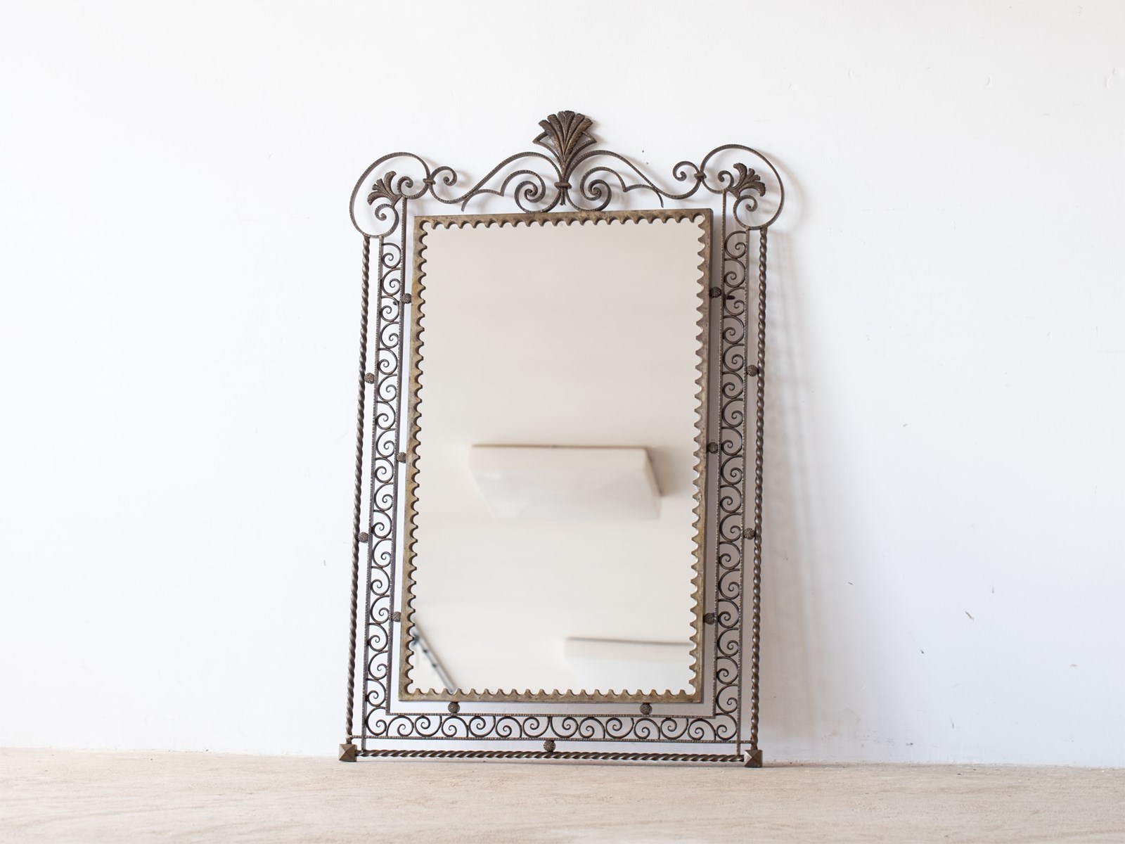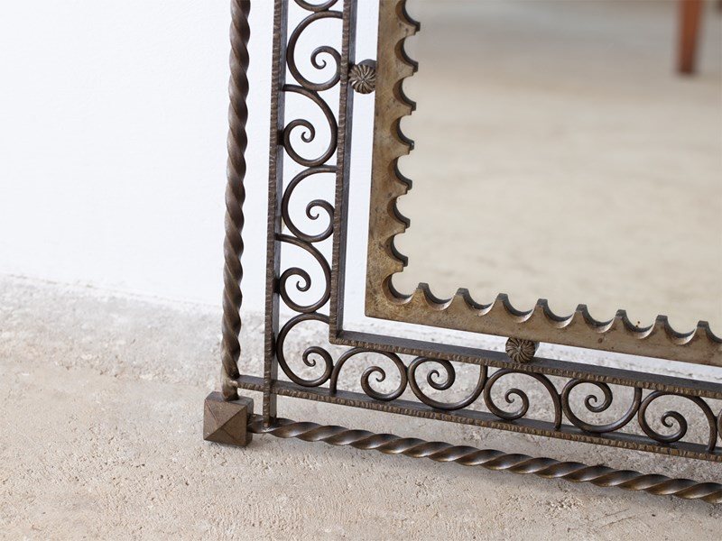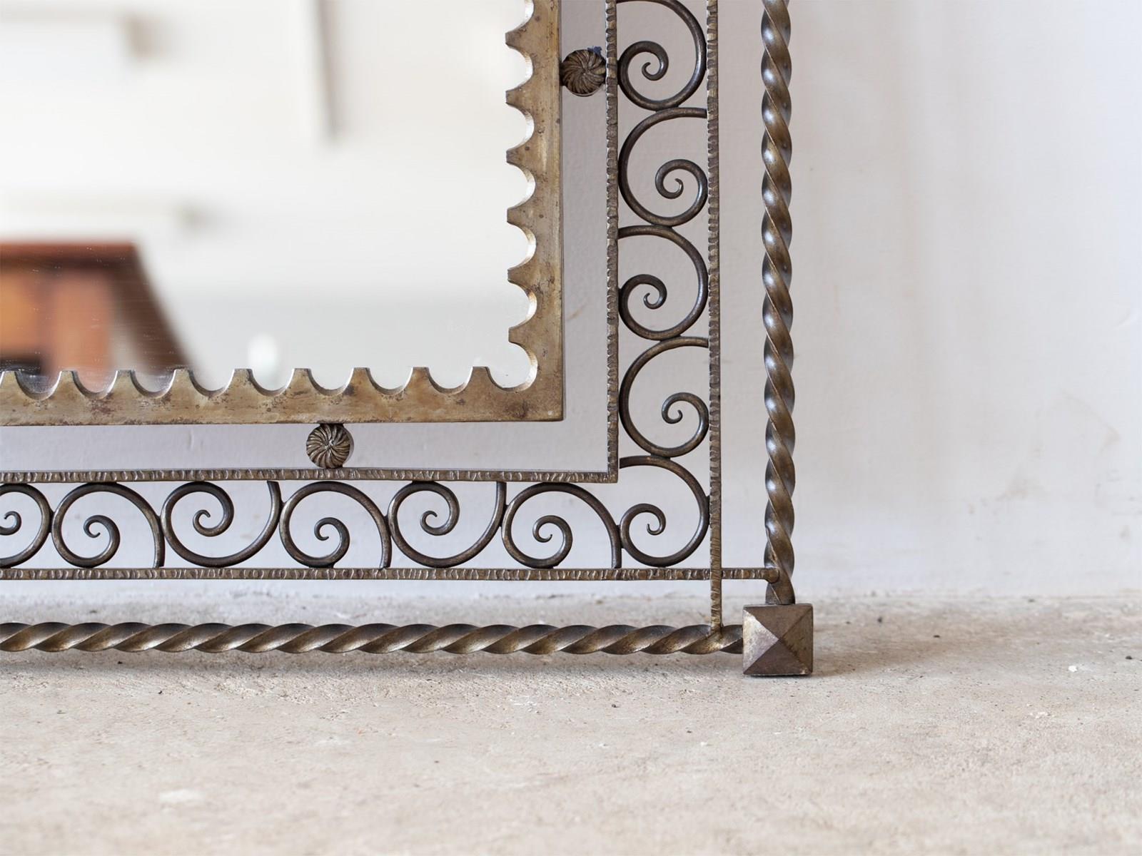 A large Art Deco wrought iron mirror. French, c. 1930s.
