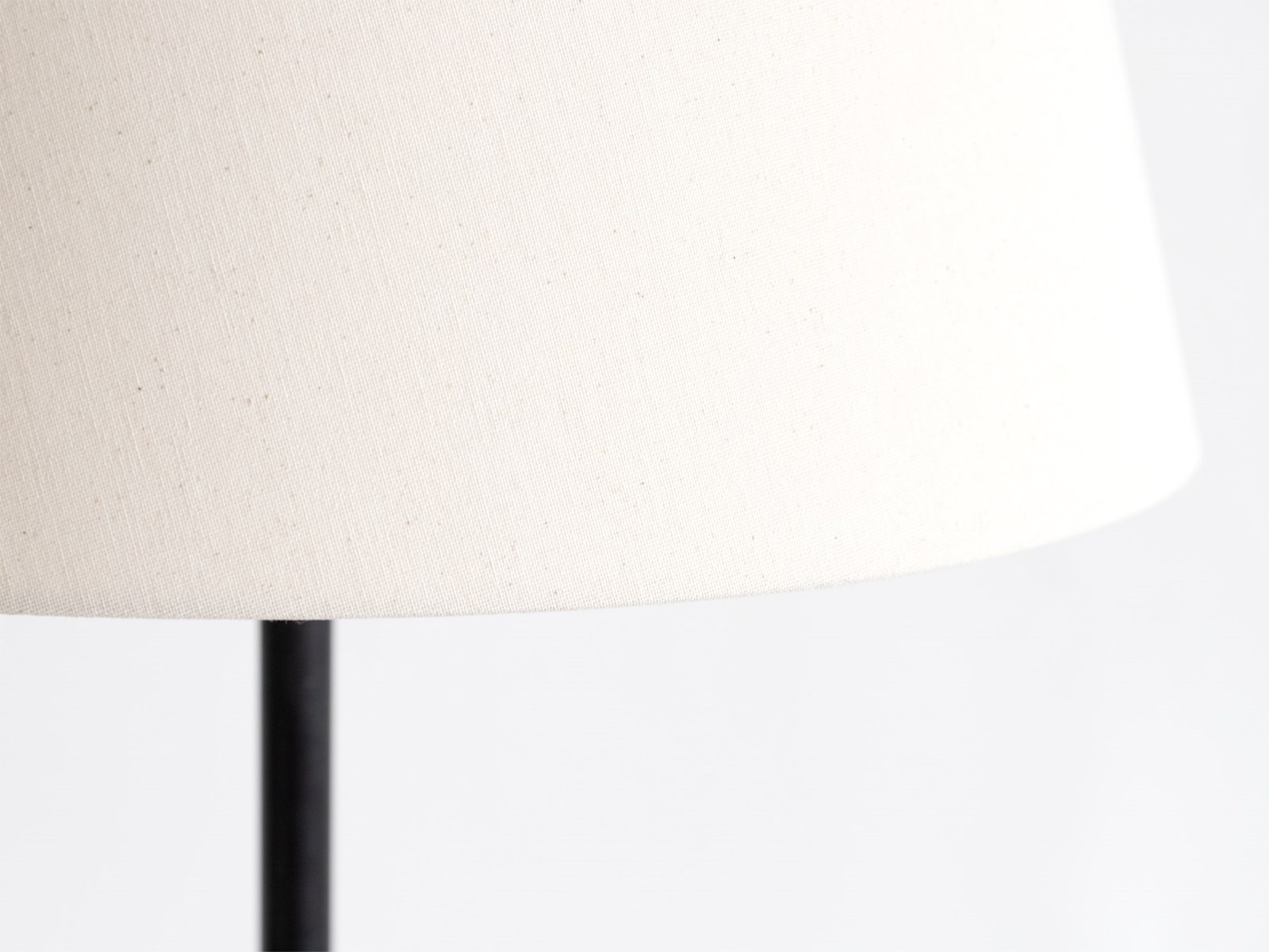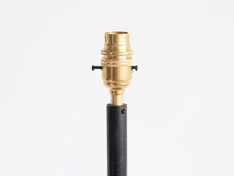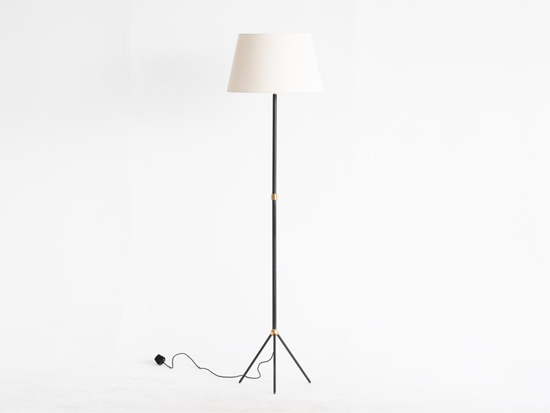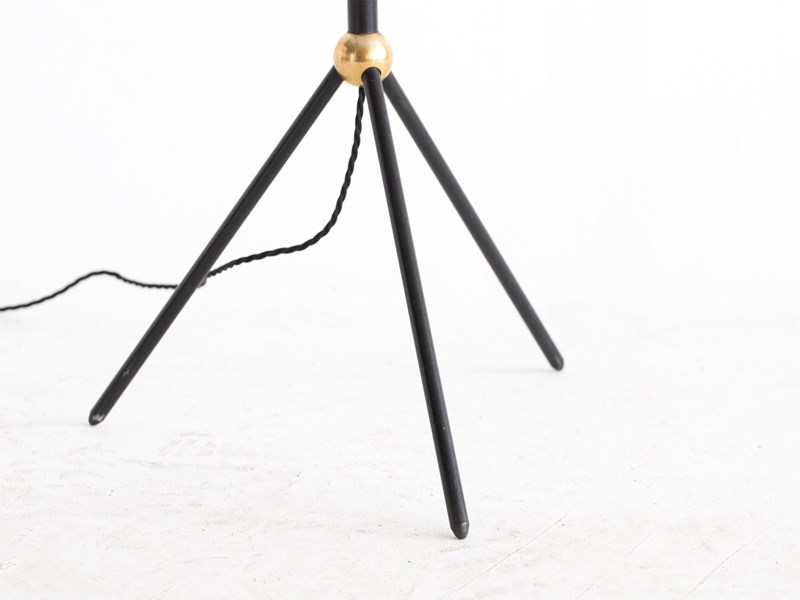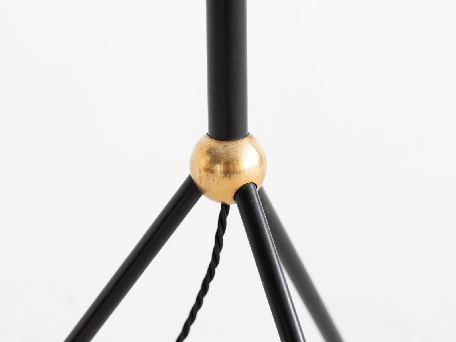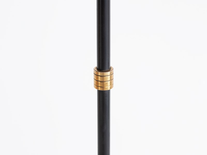 A brass and blackened steel atomic floor lamp. French, mid 20C.