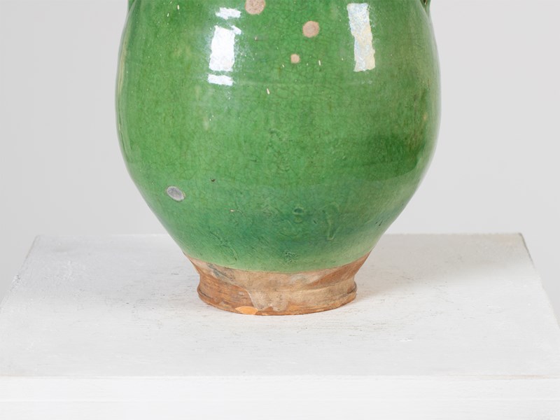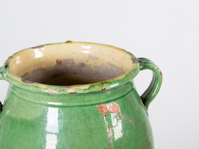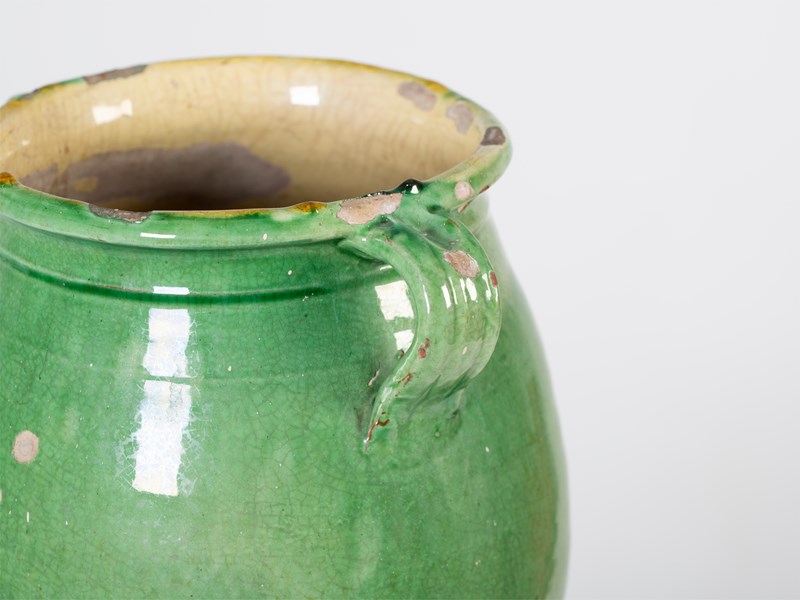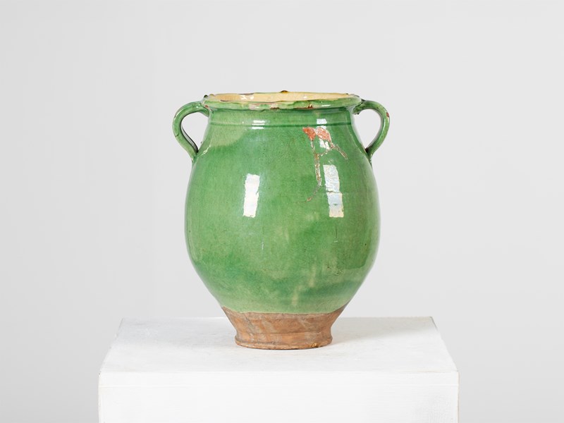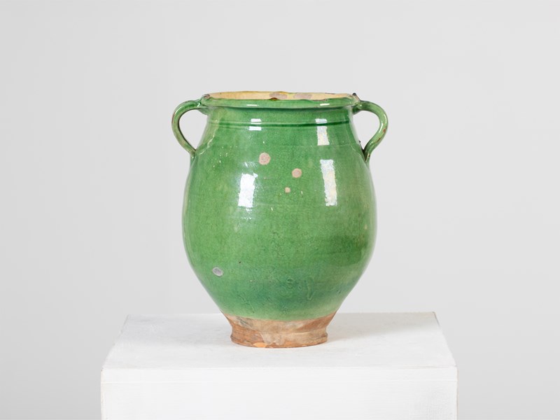 A green-glazed terracotta confit pot. Southern France, 19C.