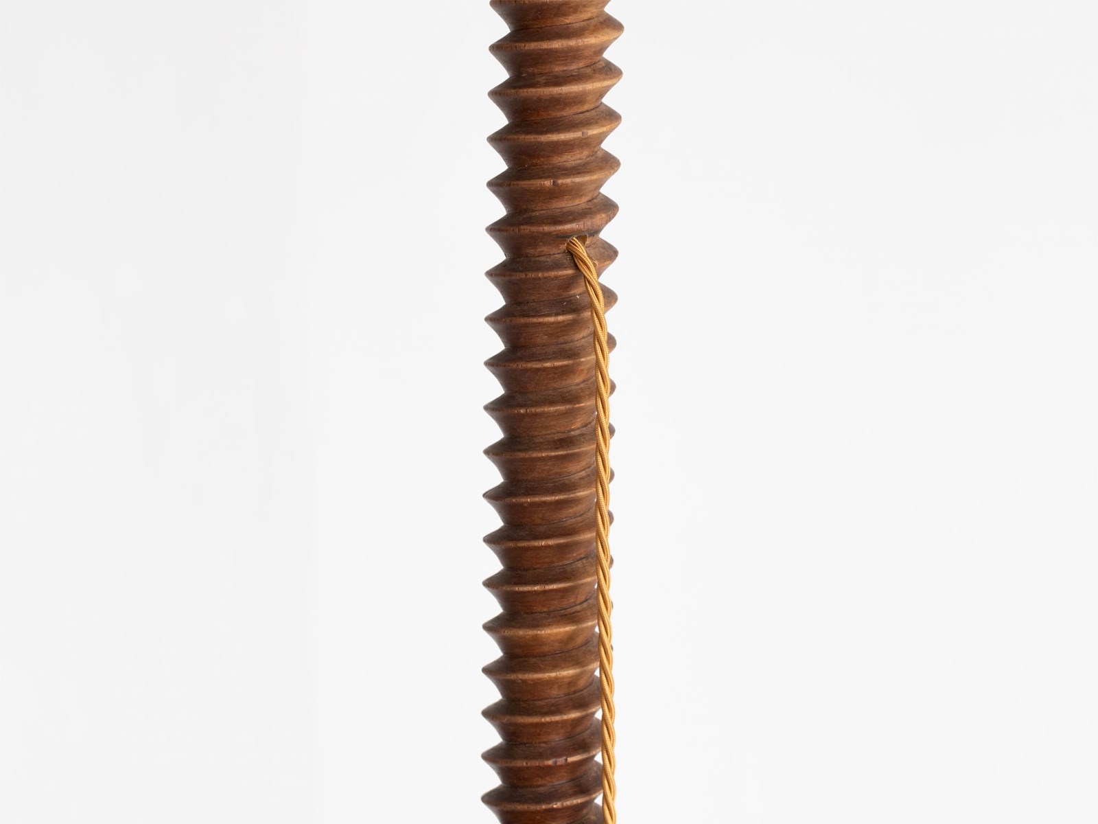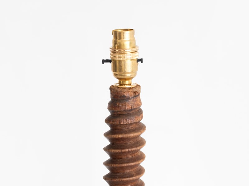 An elm and beech folk art floor lamp converted from an antique screw press. French, mid 20C.