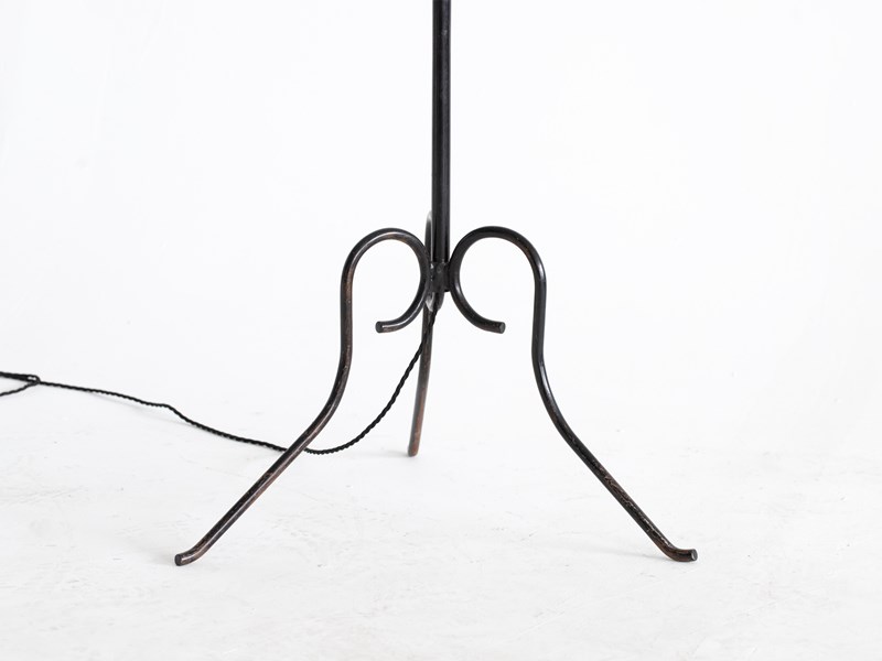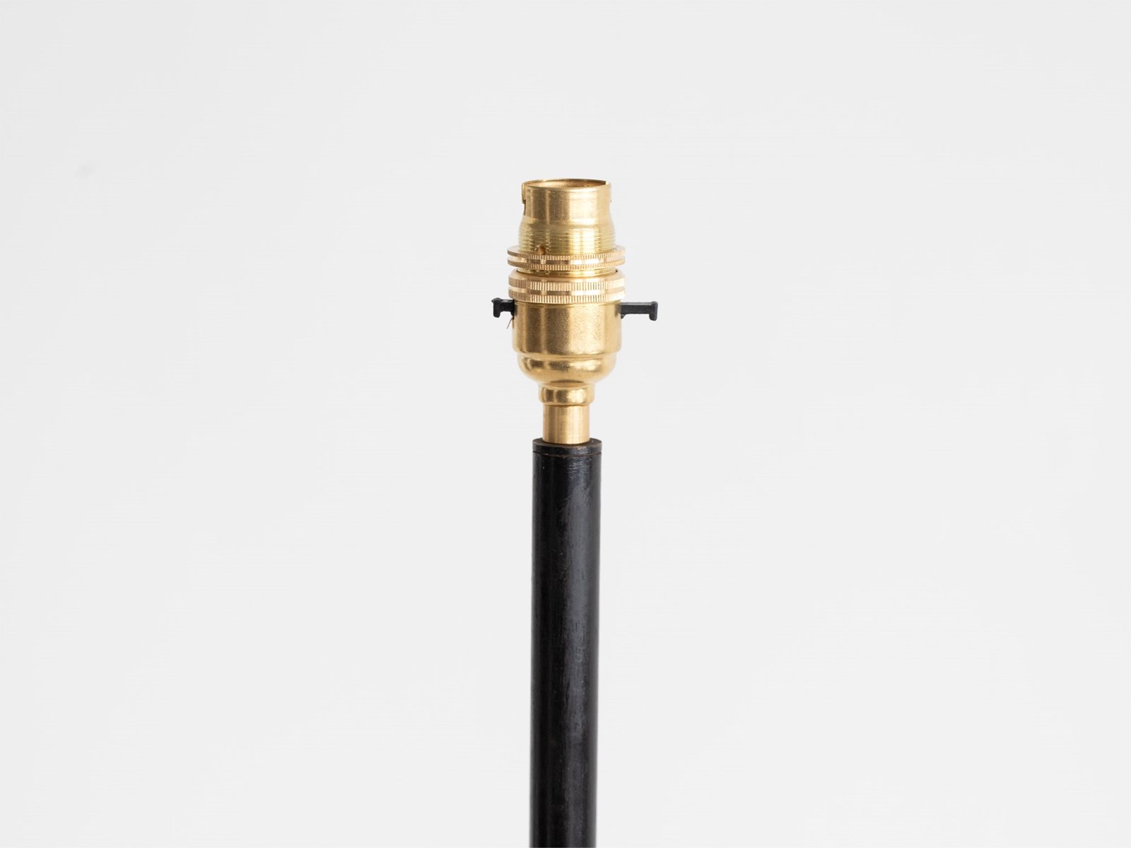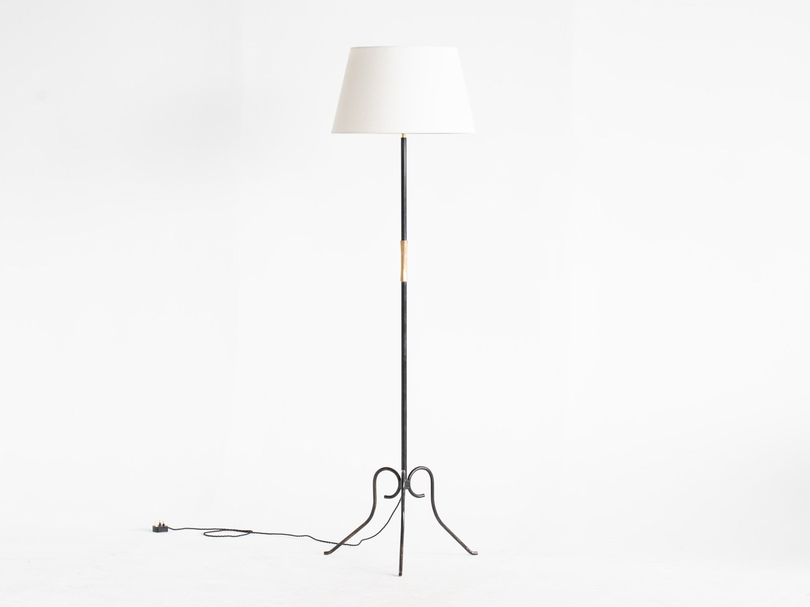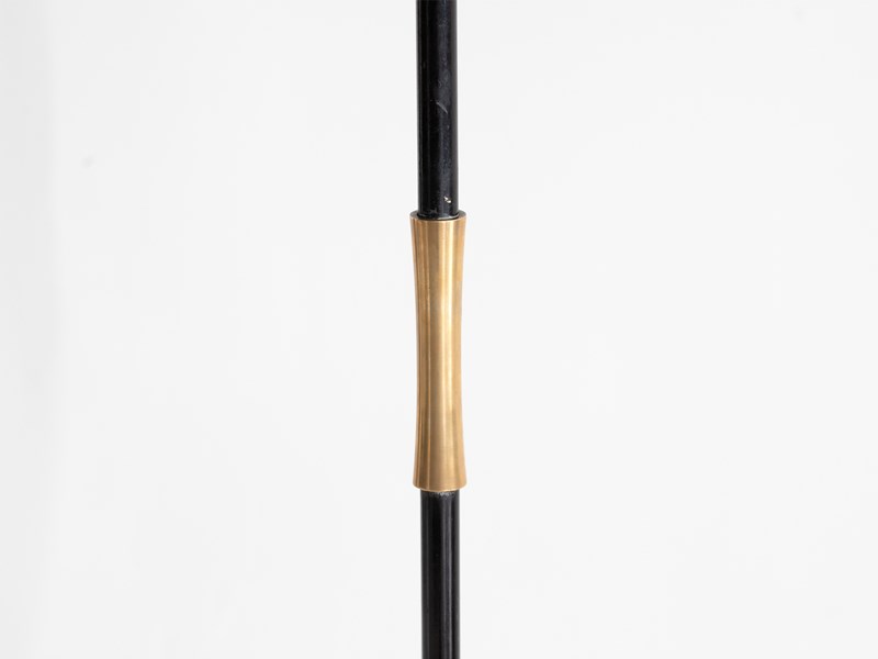 A brass and lacquered steel floor lamp. French, mid 20C.