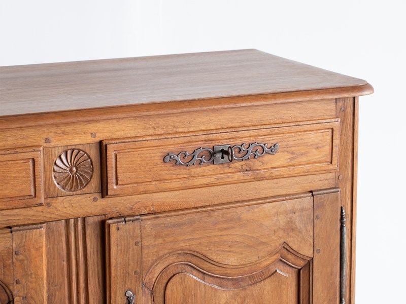 A panelled oak buffet or sideboard in the Louis XV taste. French, late 19C.