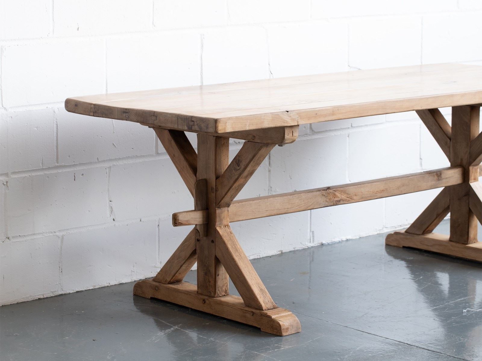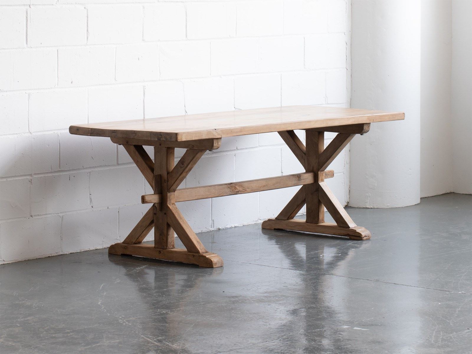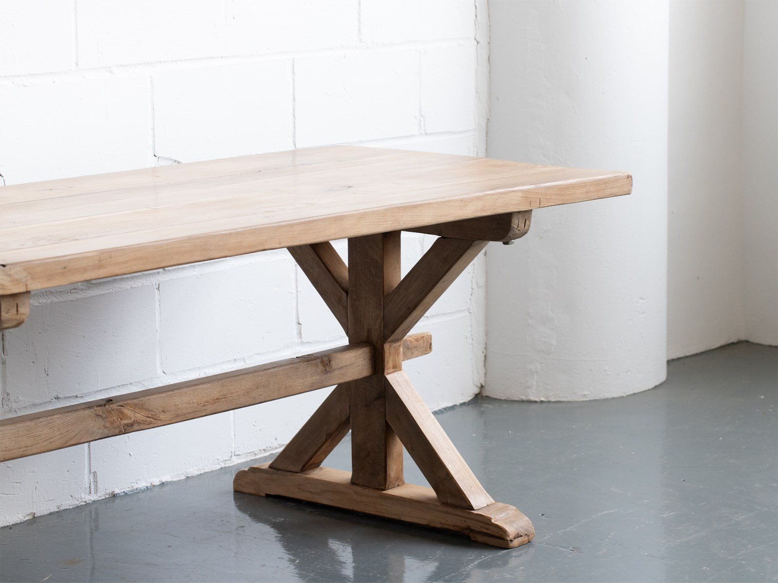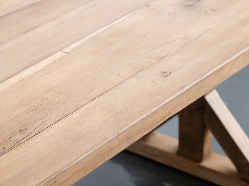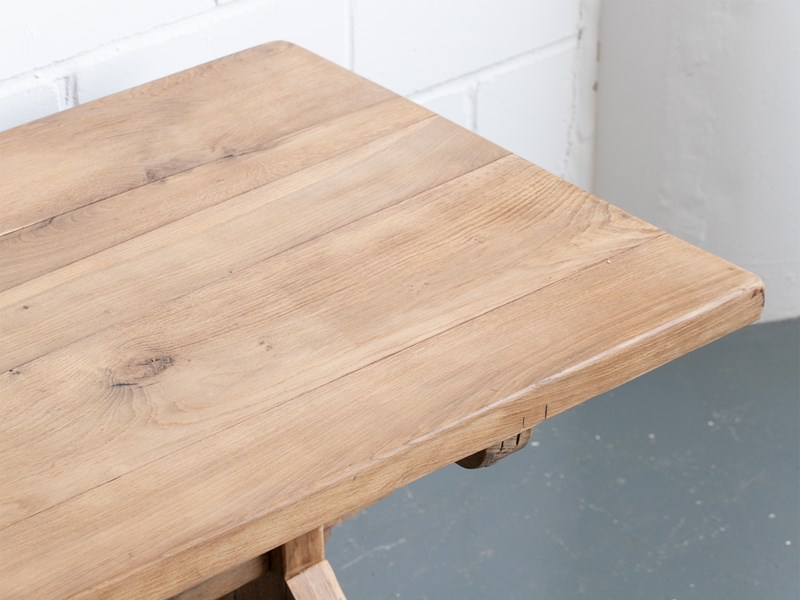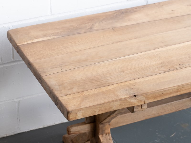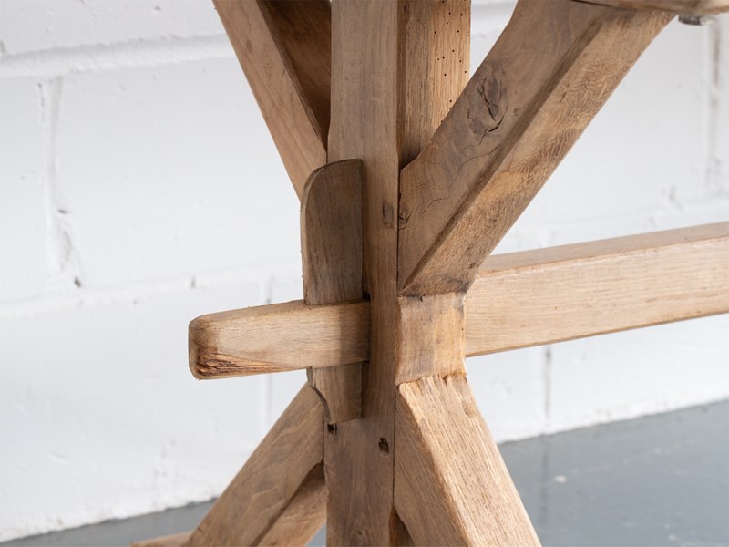 A refectory-style oak x-frame dining table. French, mid 20C.