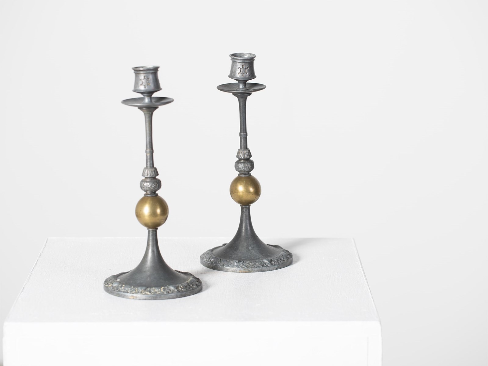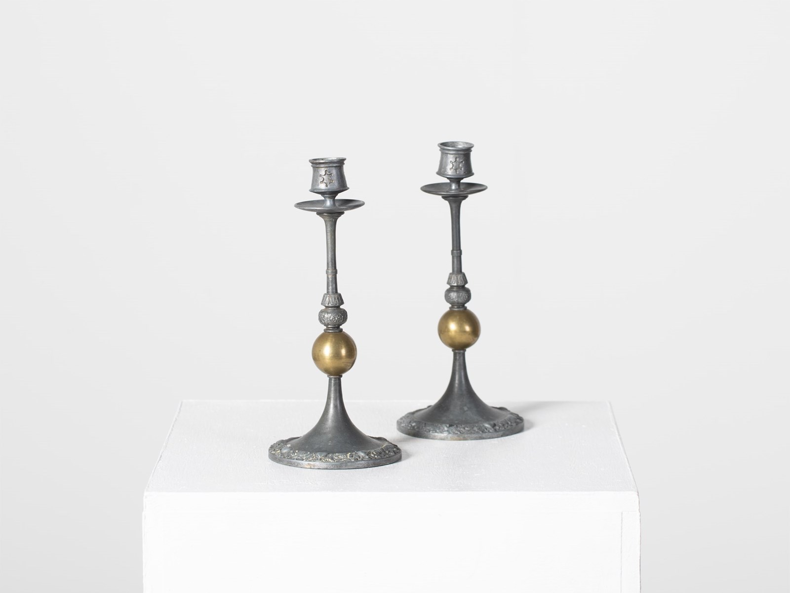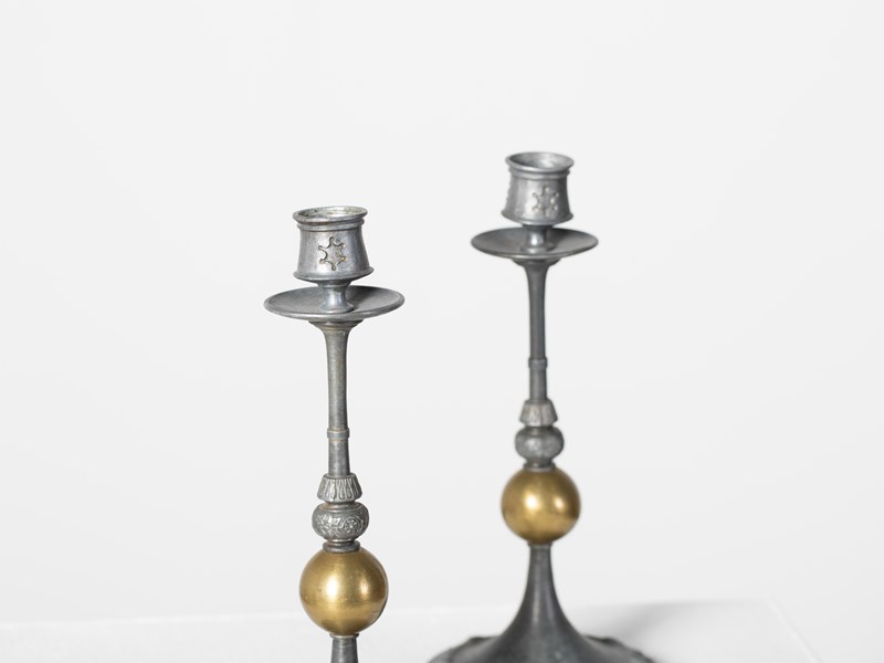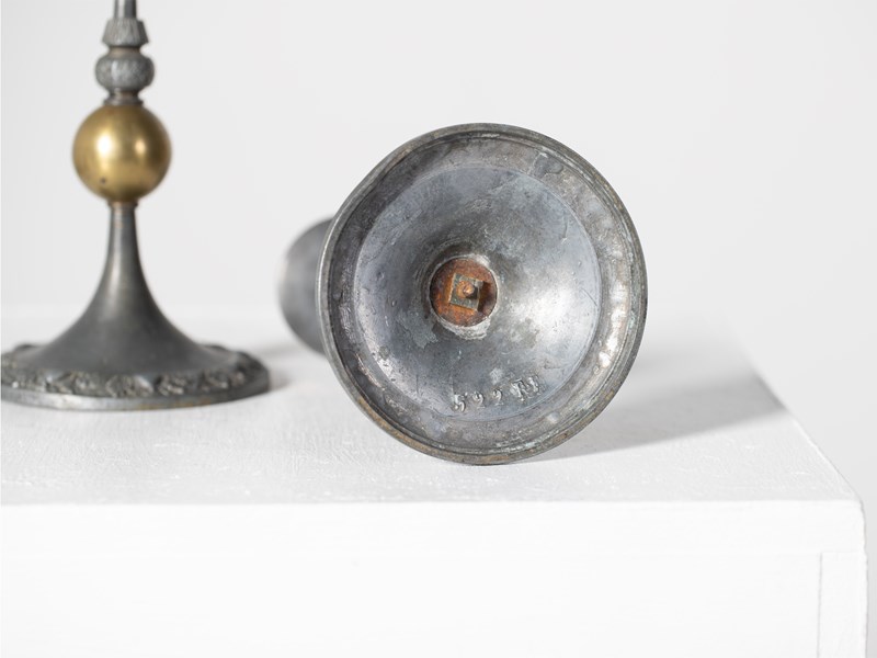 French Pewter & Brass Candlesticks