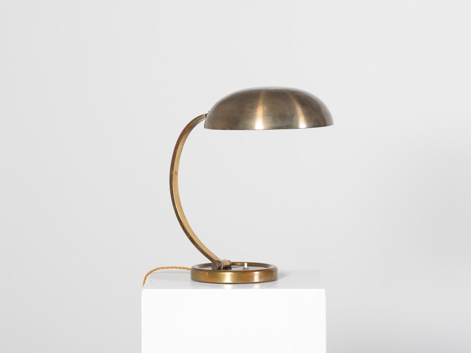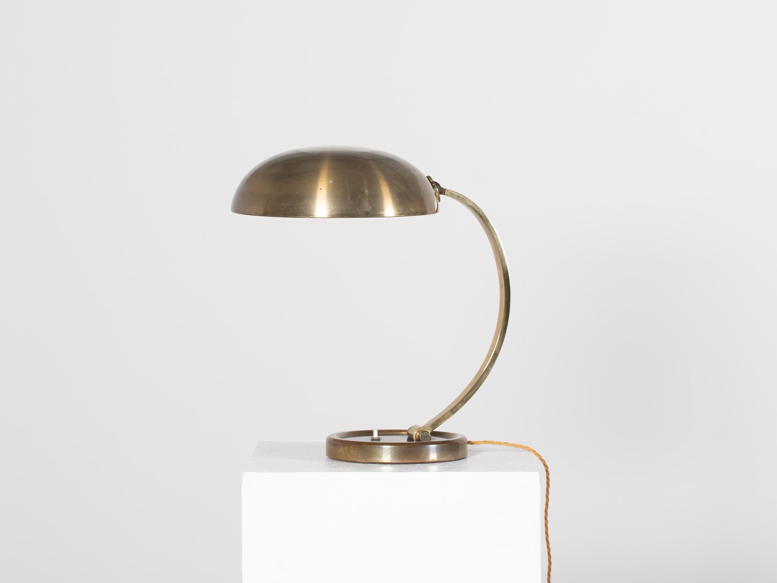 An adjustable gilt brass table lamp by Gebrüder Cosack for Gecos. German, early-mid 20C.