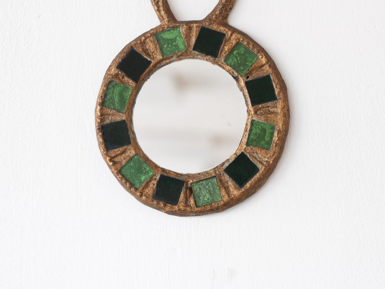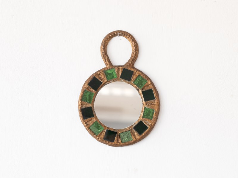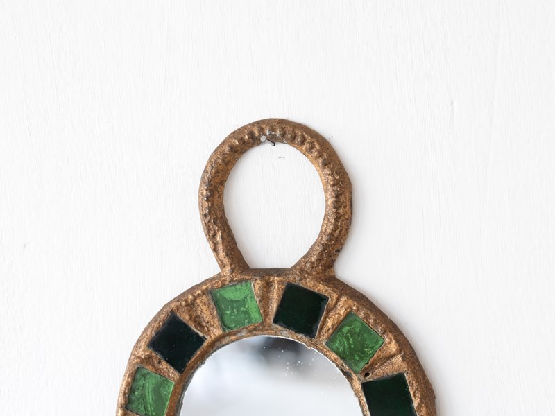 A diminutive gilt lead mirror with Talosel inlay by Irena Jaworska (Line Vautrin School). French, c. 1960s.