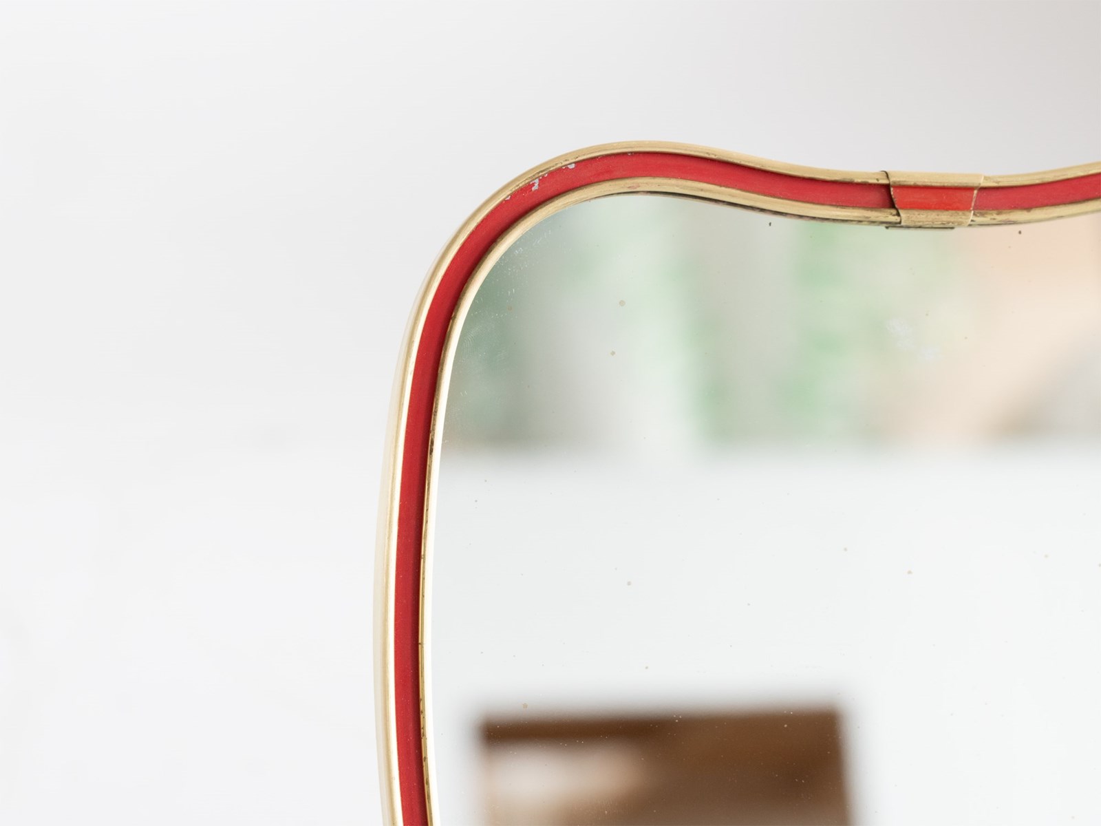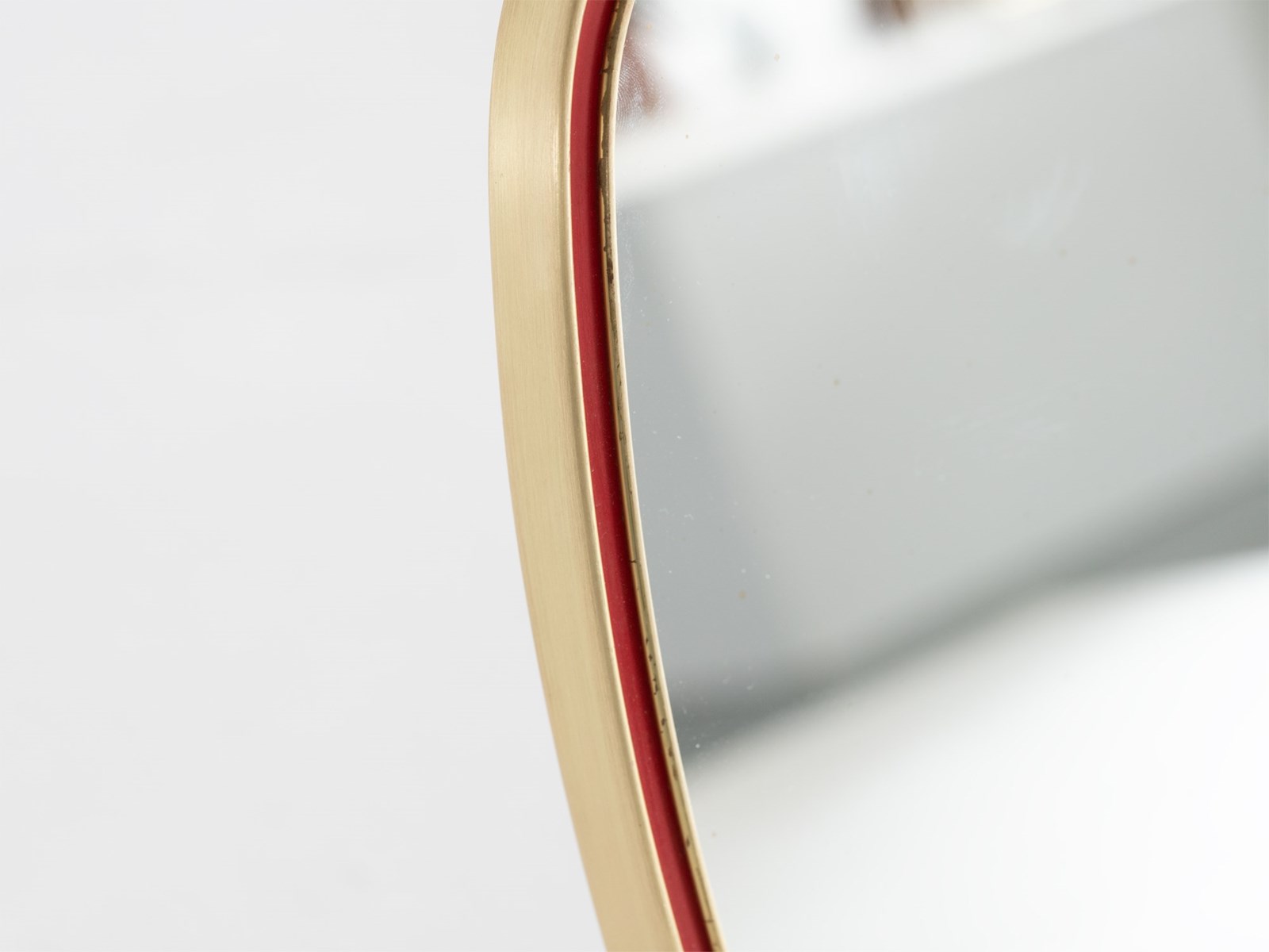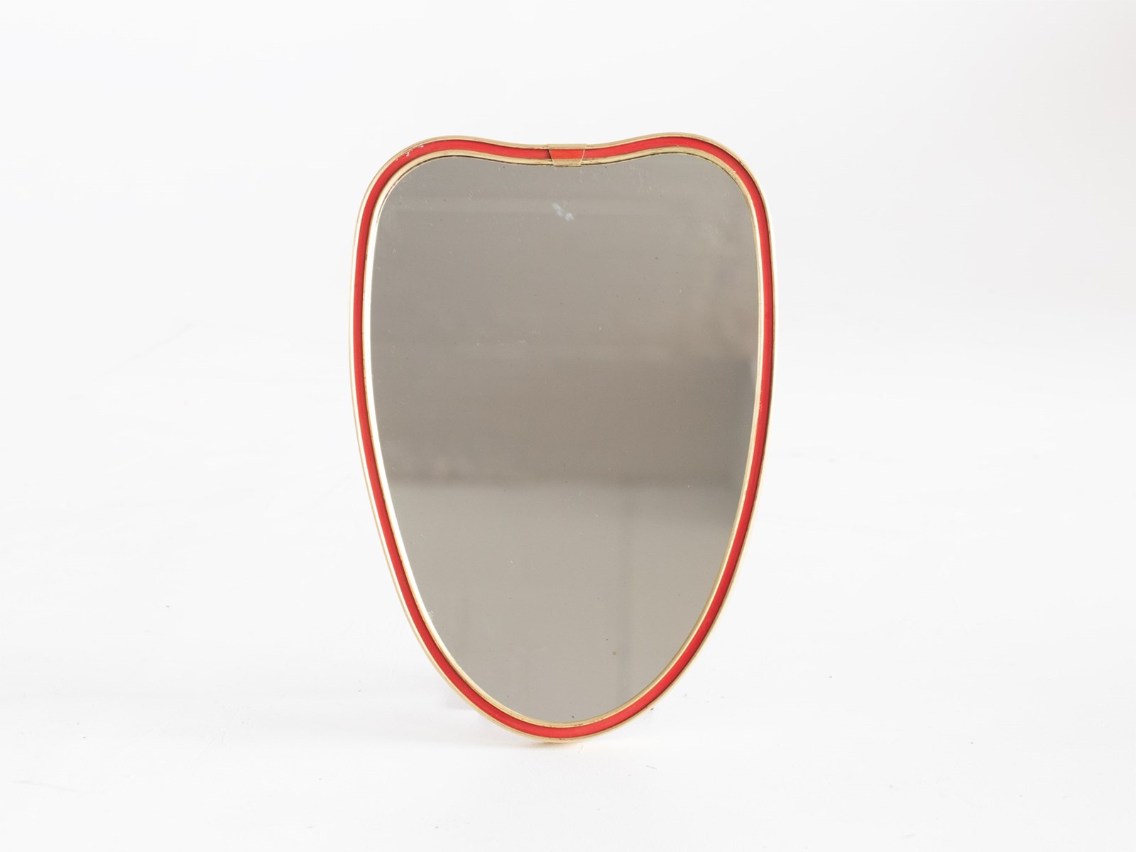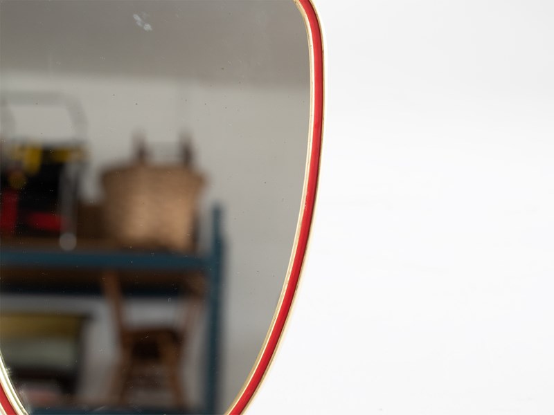 A mid century brass and painted aluminium shield mirror. Italian, c. 1960s.
