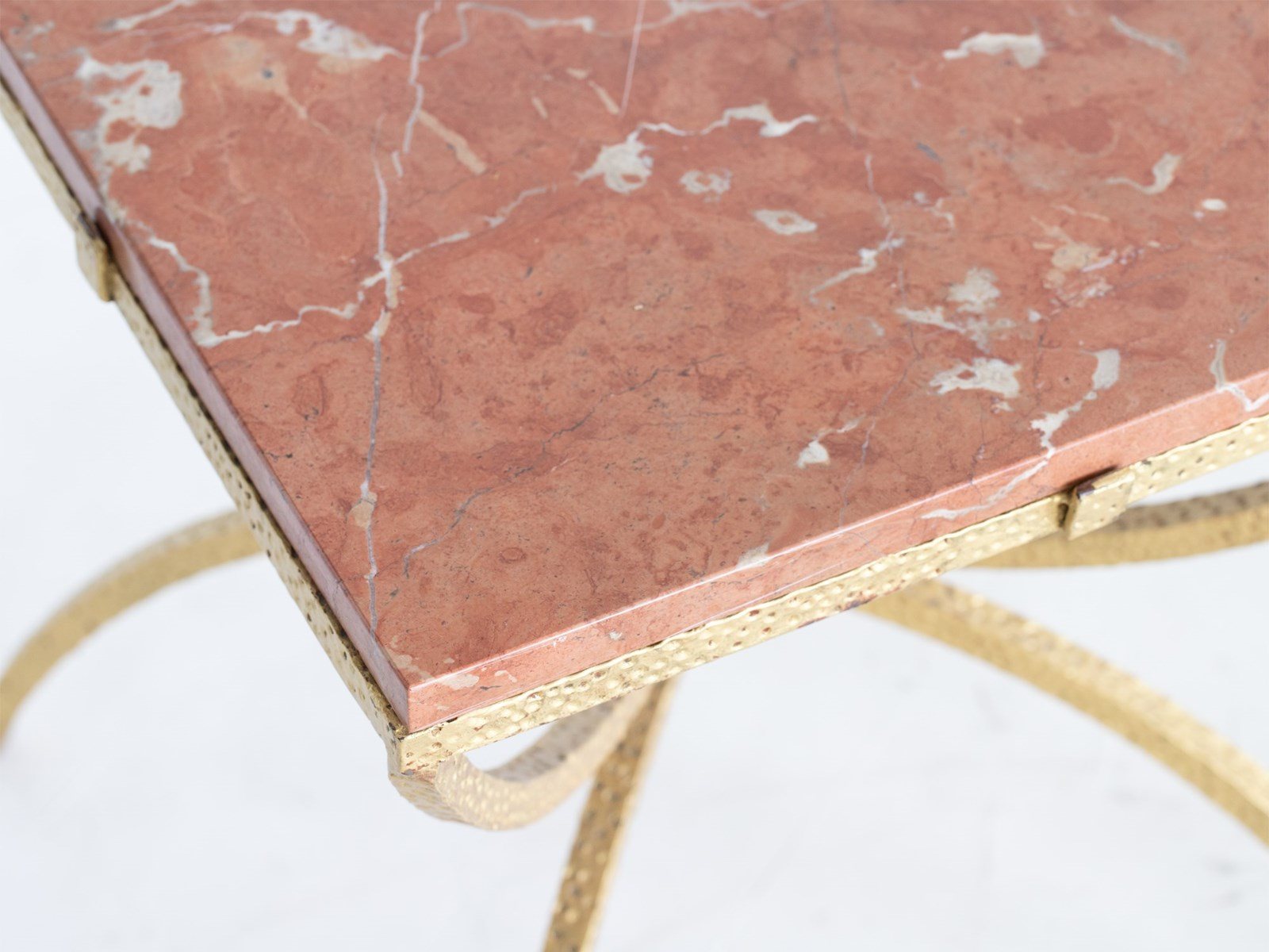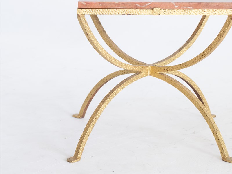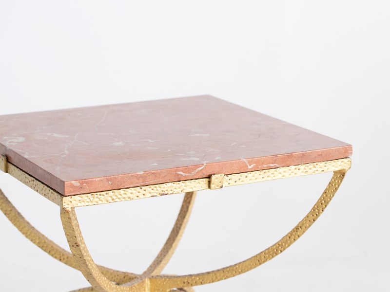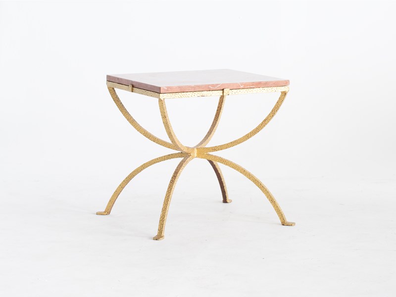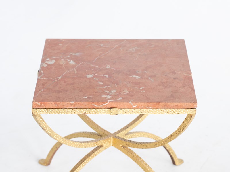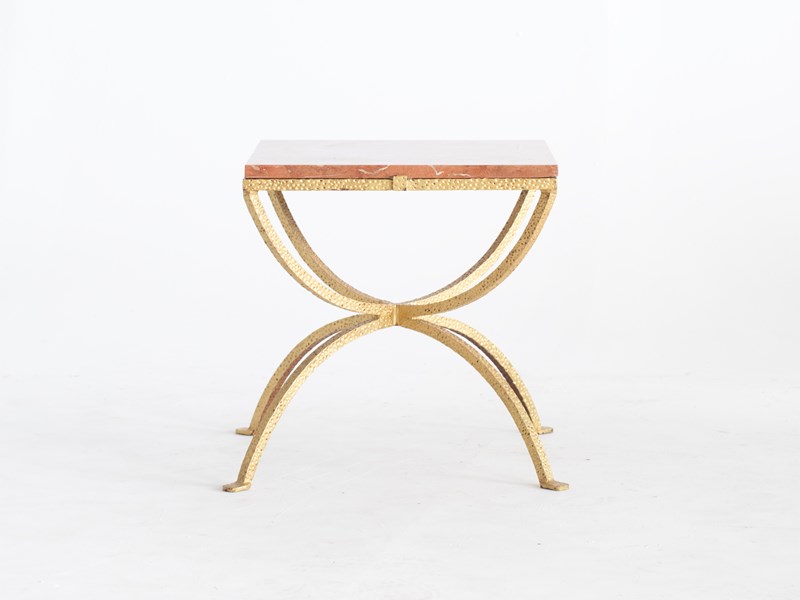 A gilt iron side table with square Rosso Alicante marble top. Italian, mid 20C.