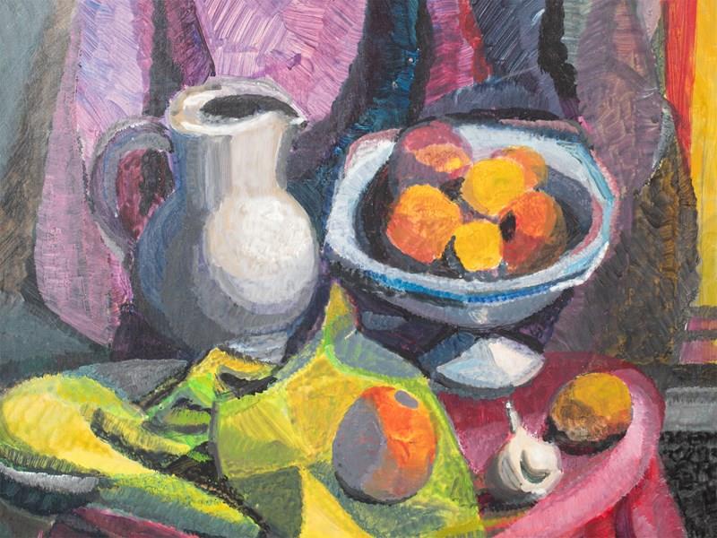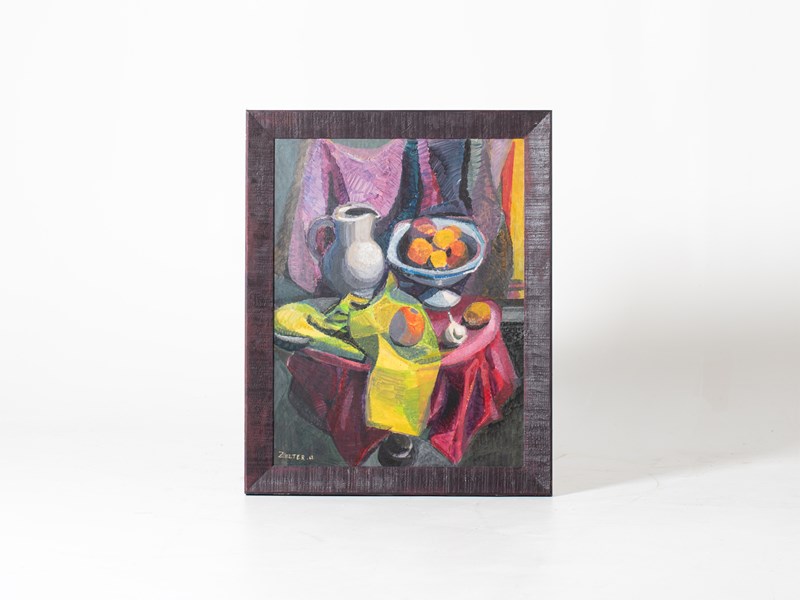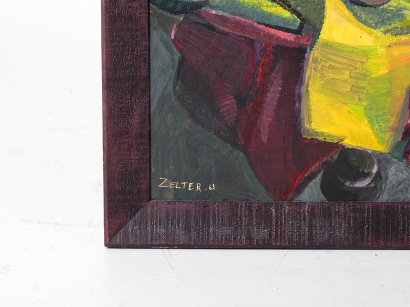 An oil on board still life painting by Georges Joseph Zelter. French, c. 1966.