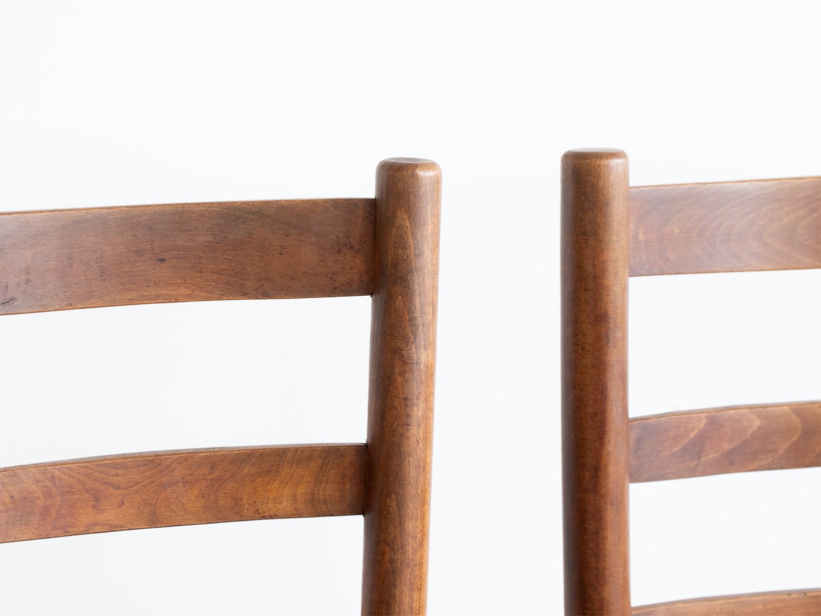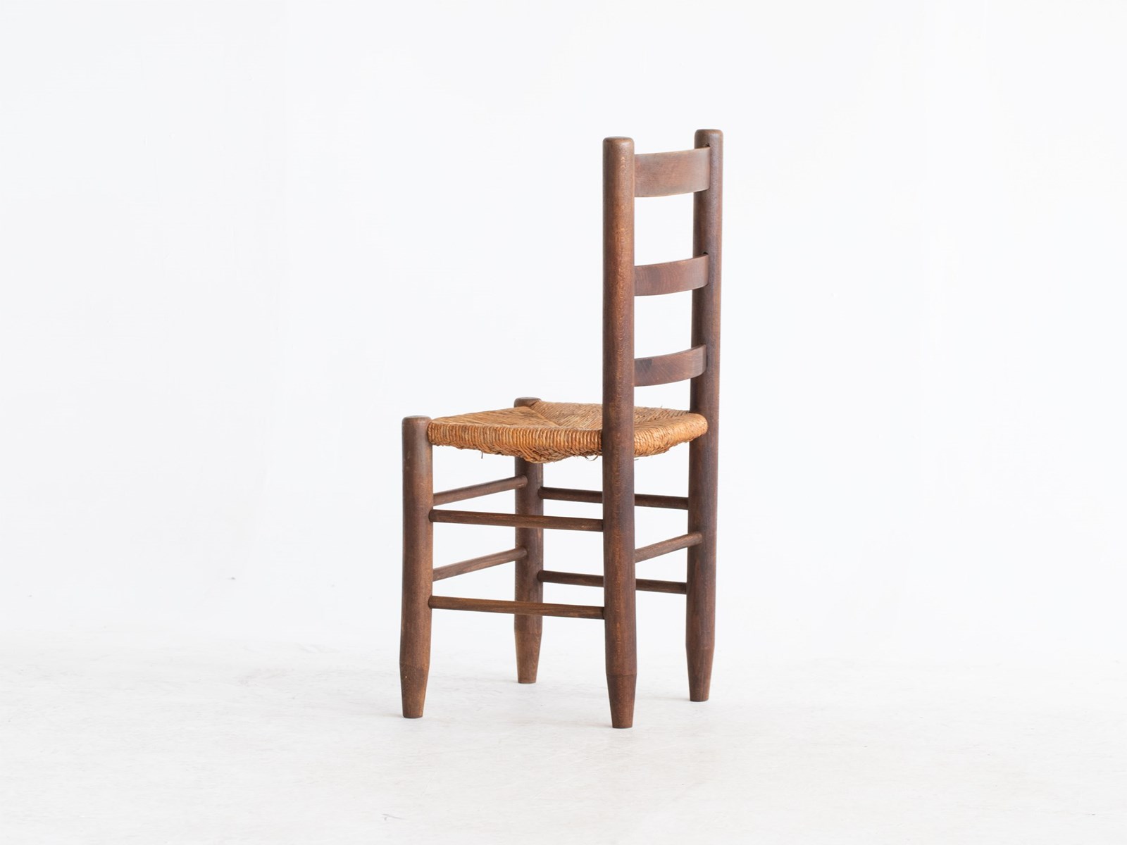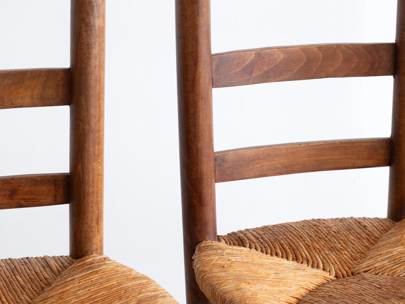 A set of four beech and rush dining chairs in the manner of Charlotte Perriand’s No 19 Bauche model. French, mid 20C.