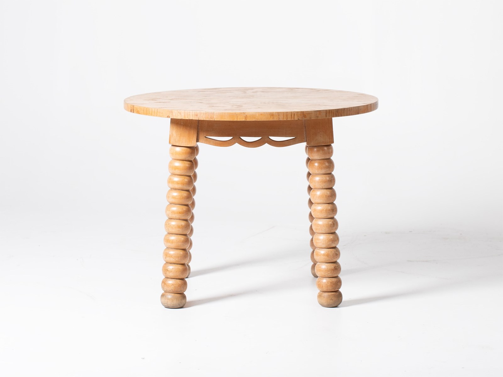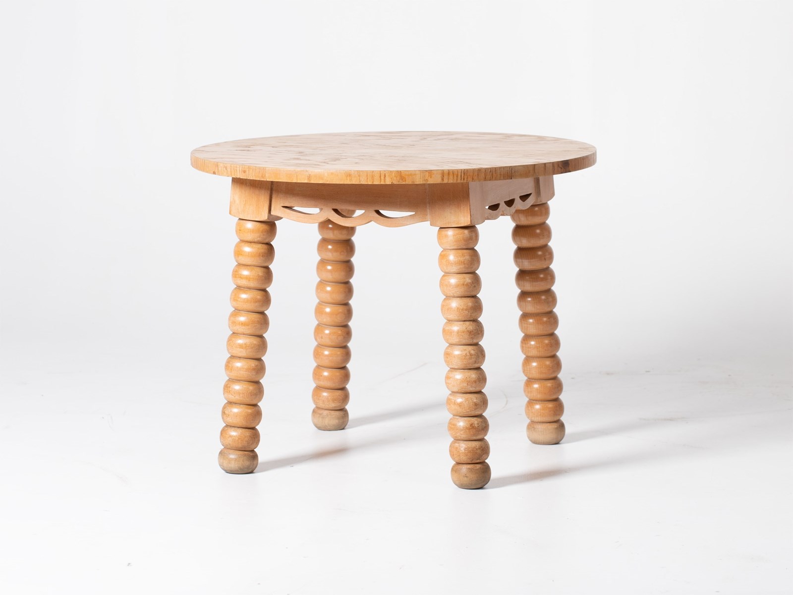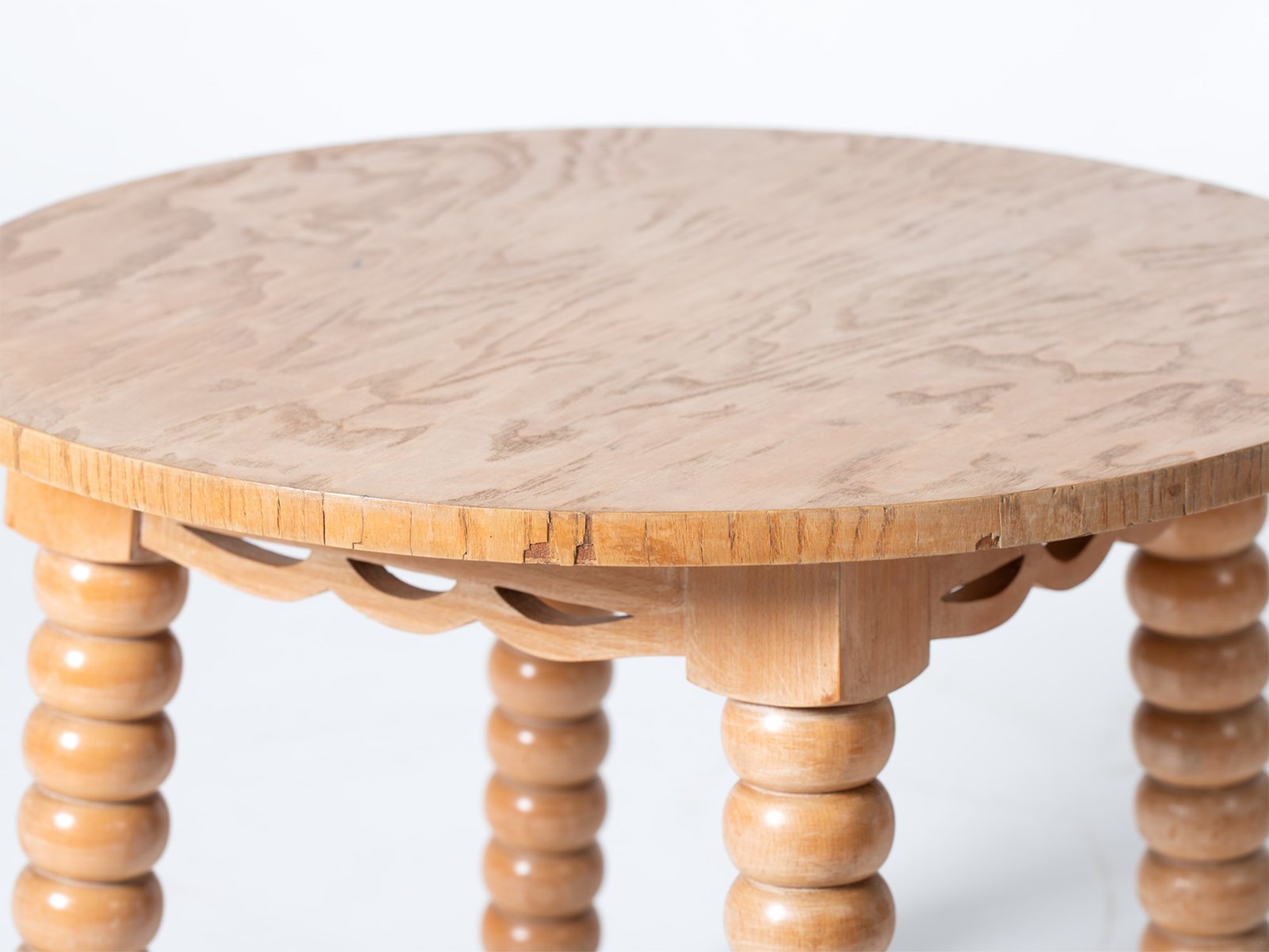 A modernist bobbin-turned beech side table. French, mid 20C.