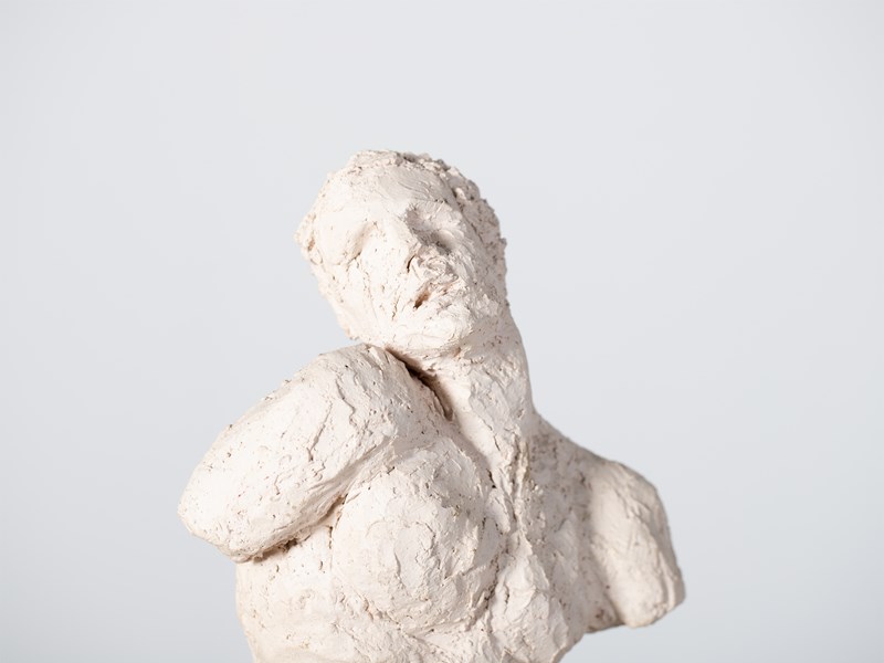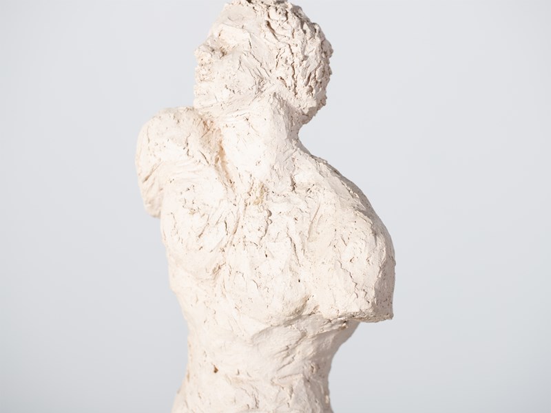 A plaster sculpture of a male nude. Unsigned, possibly a maquette for a larger piece. French, mid-late 20C.