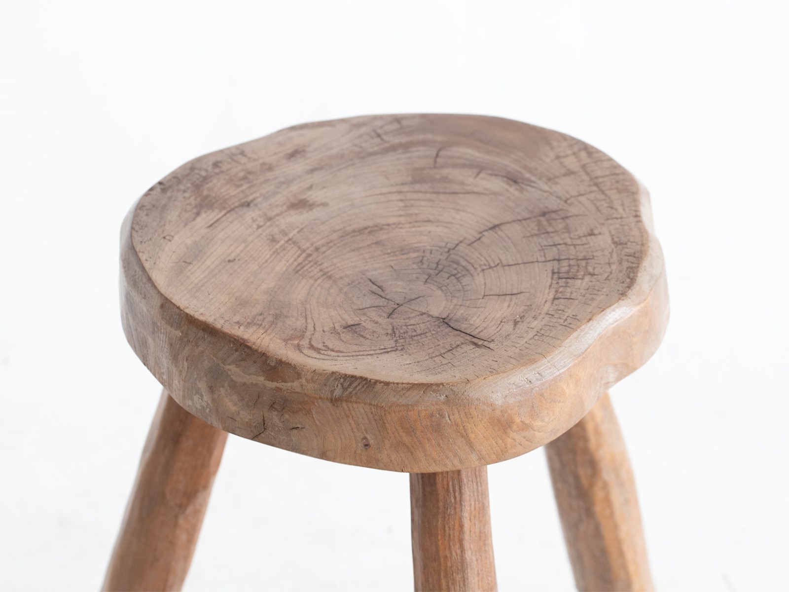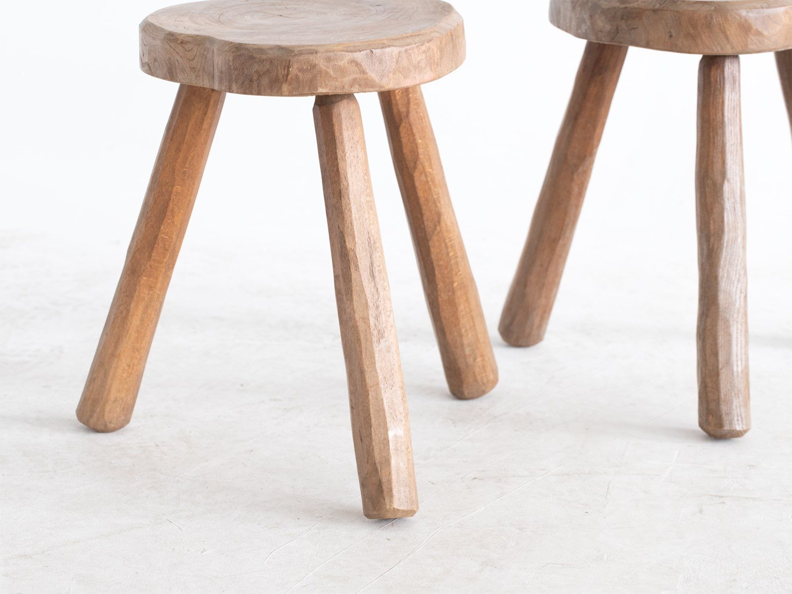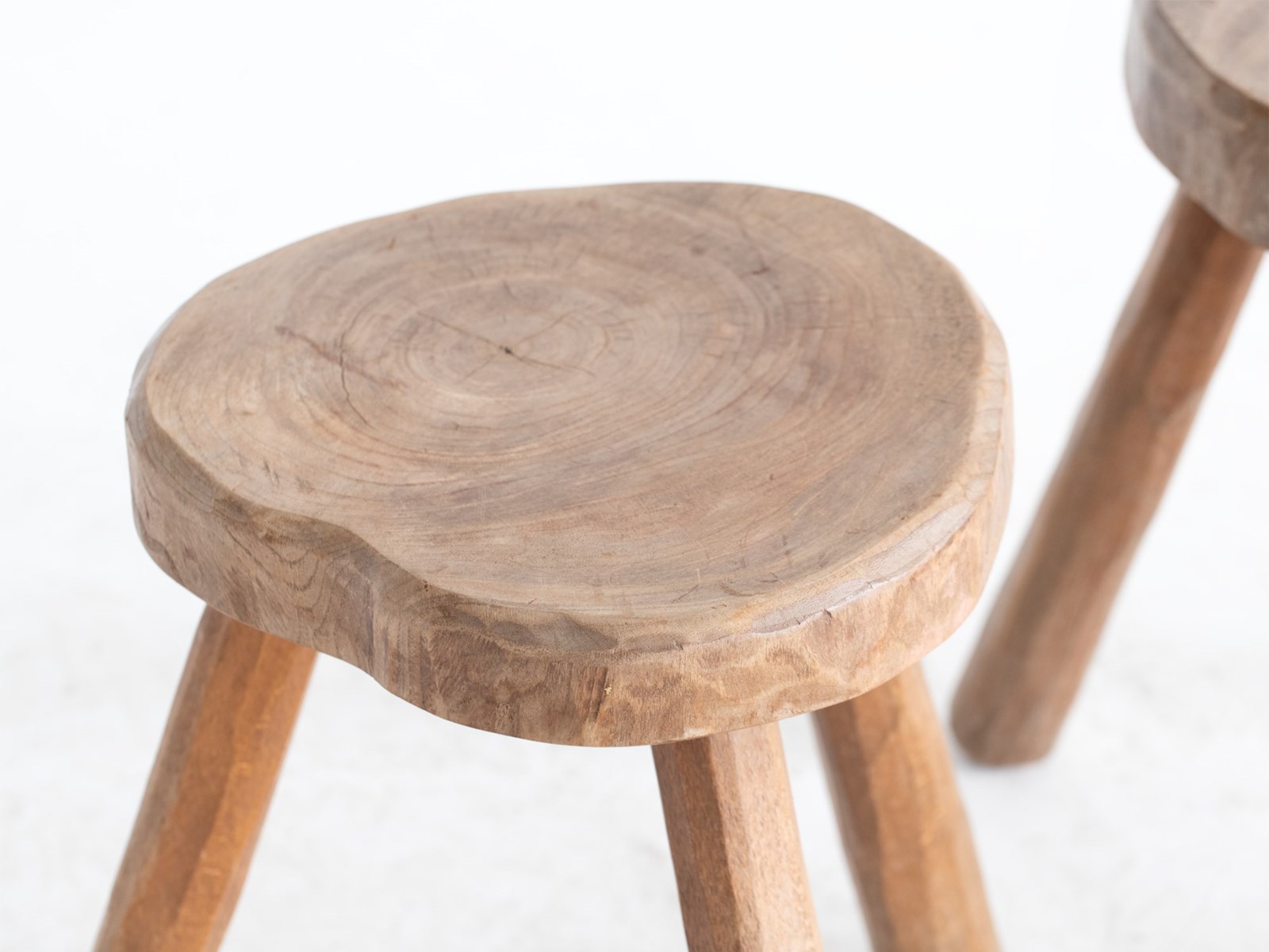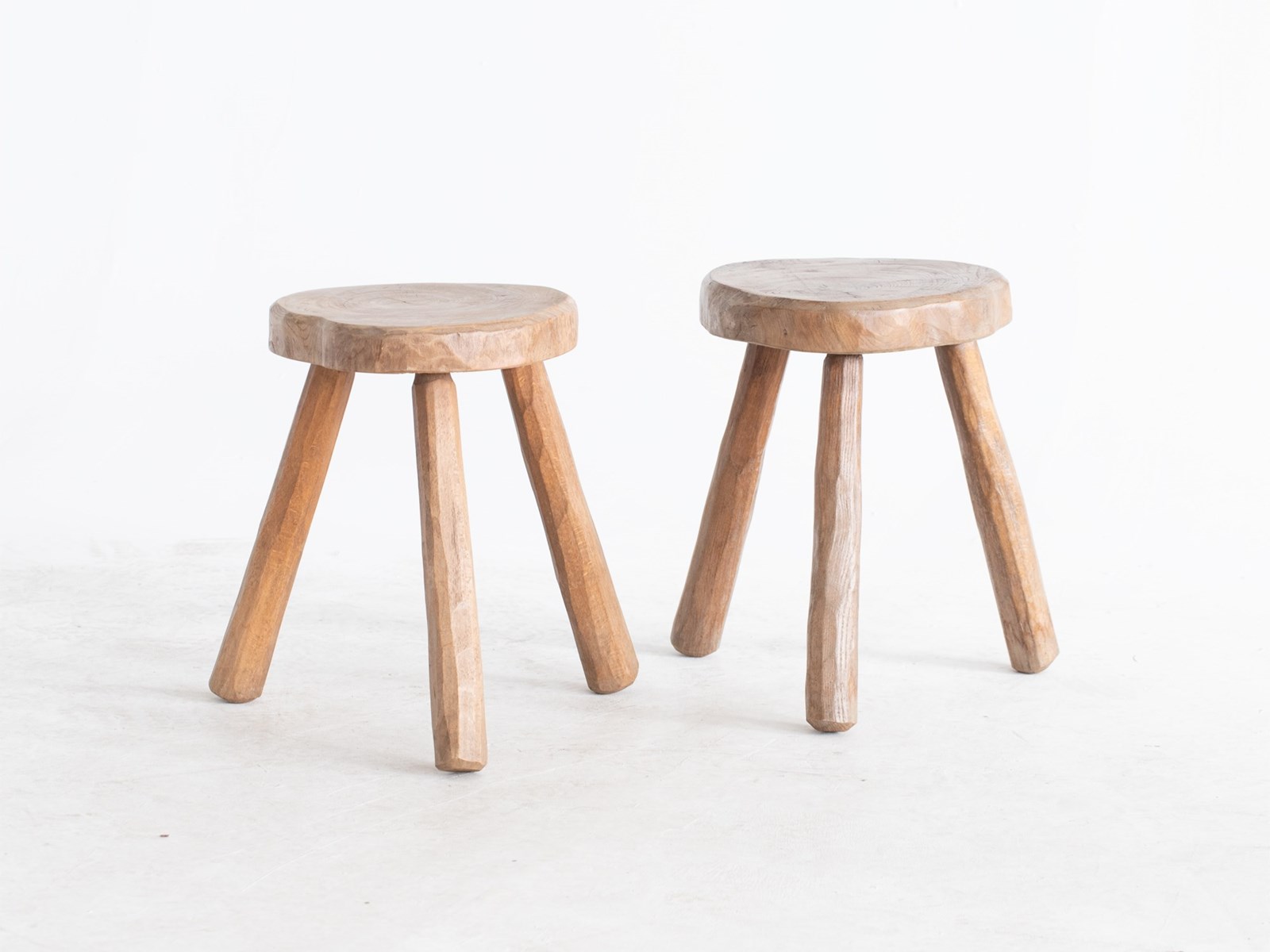 A pair of primitive elm and beech stools or side tables. French, mid 20C.