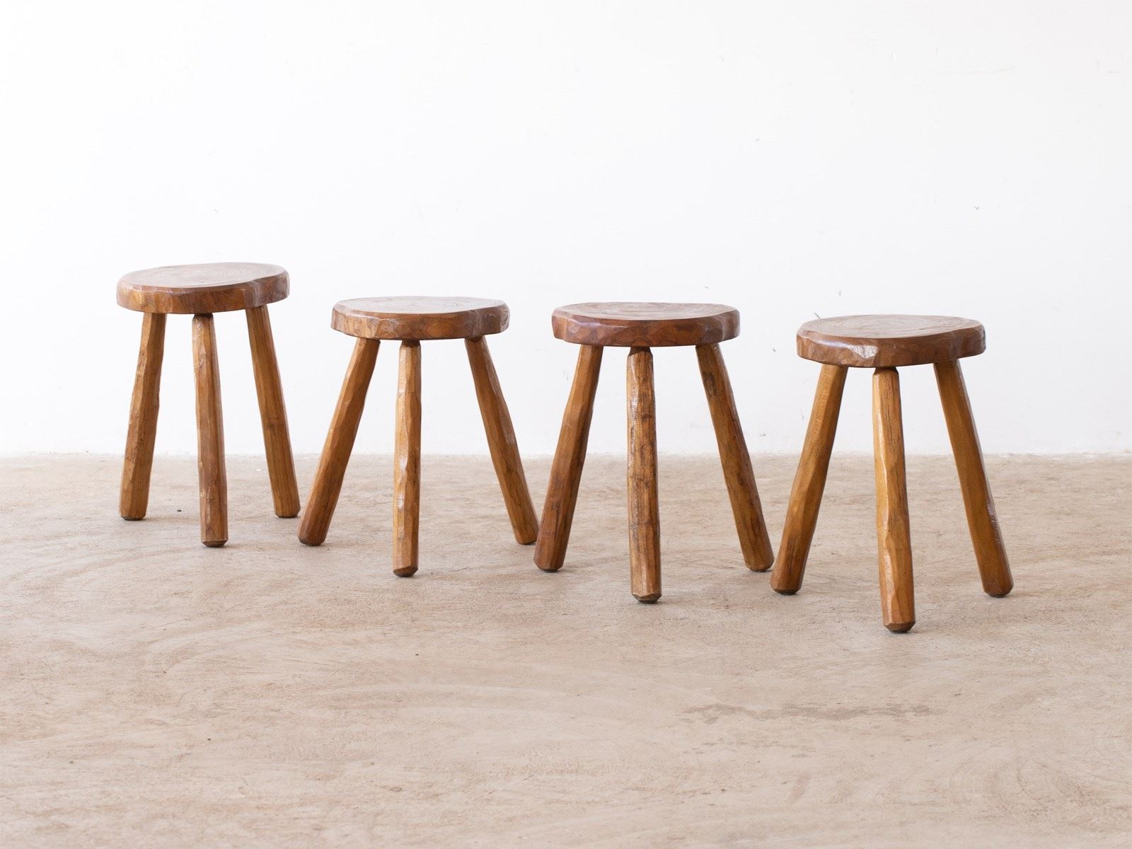A run of primitive elm stools or side tables. French, mid 20C. Sold individually - we have four available.