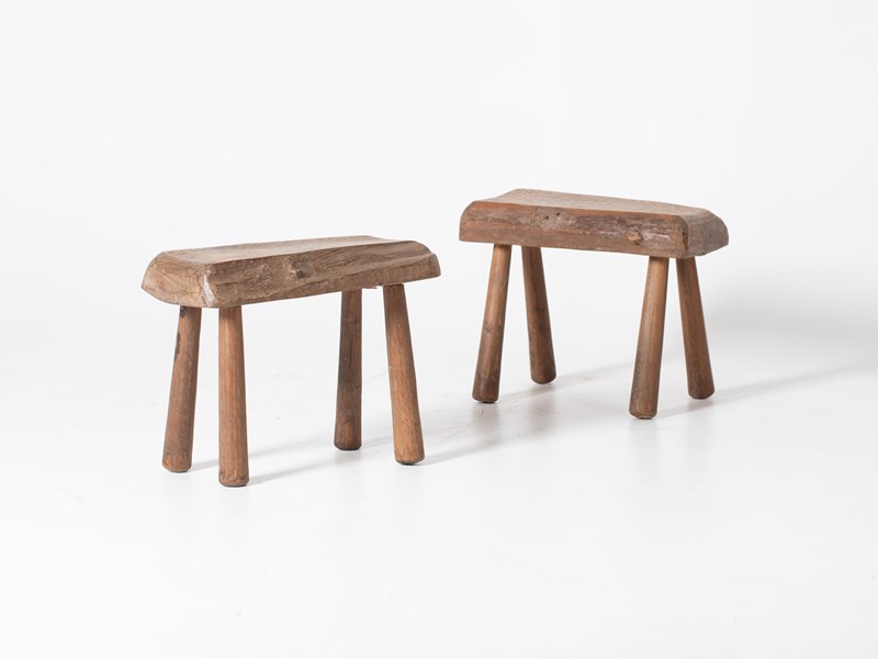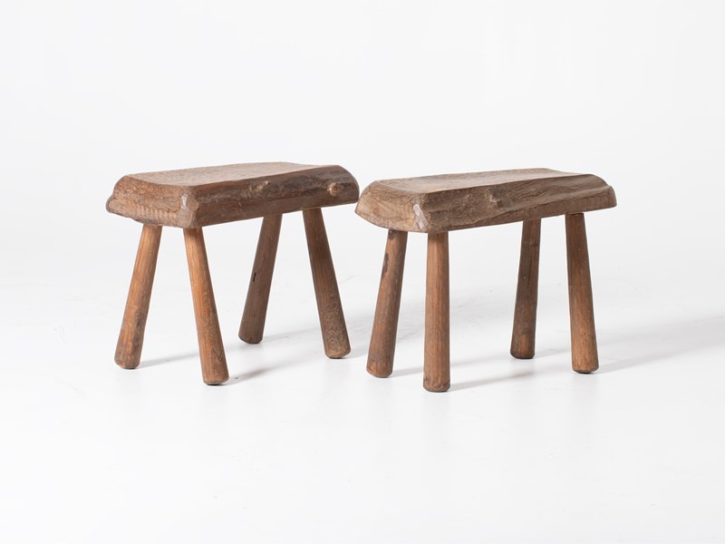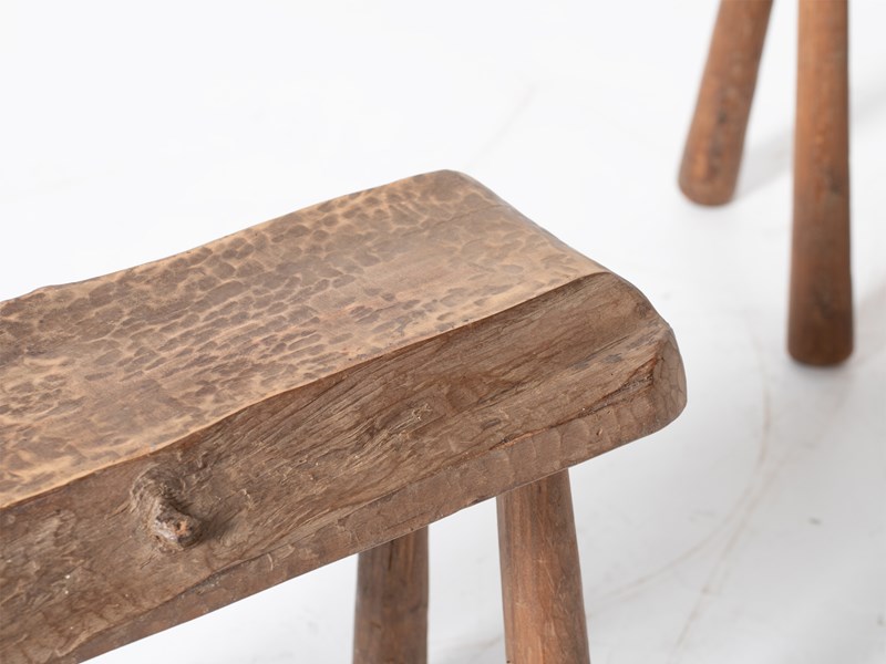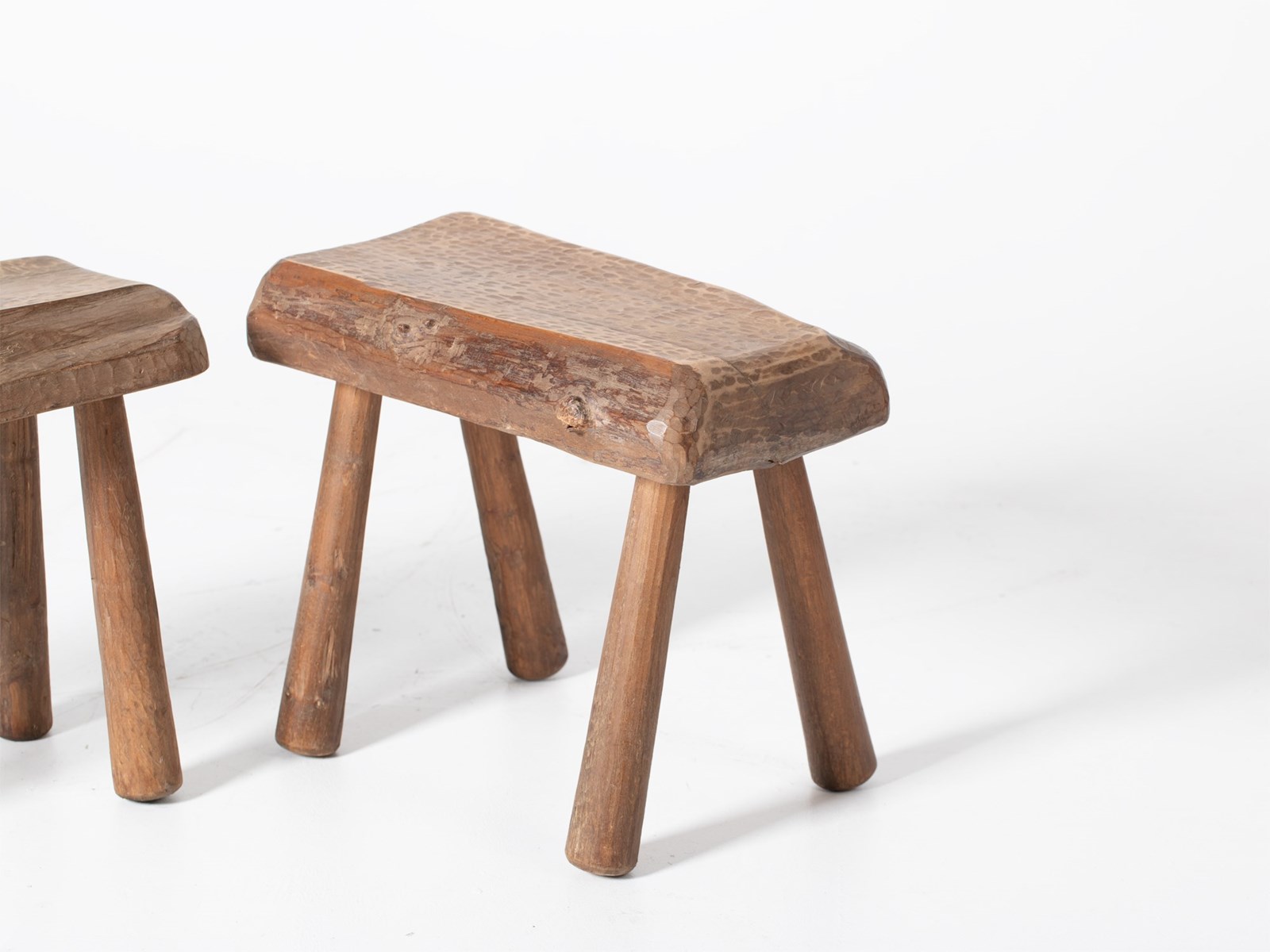 A pair of primitive oak stools or side tables. French, mid 20C.