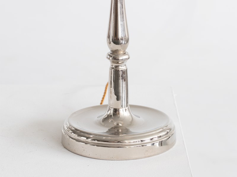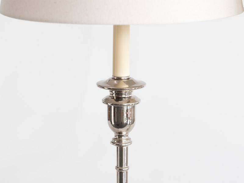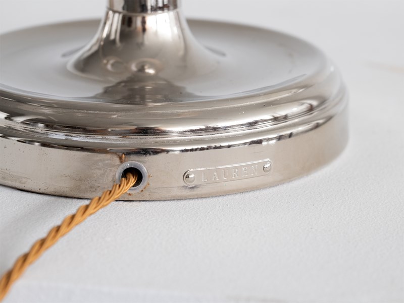A pair of chrome candlestick table lamps by Ralph Lauren, late 20C.