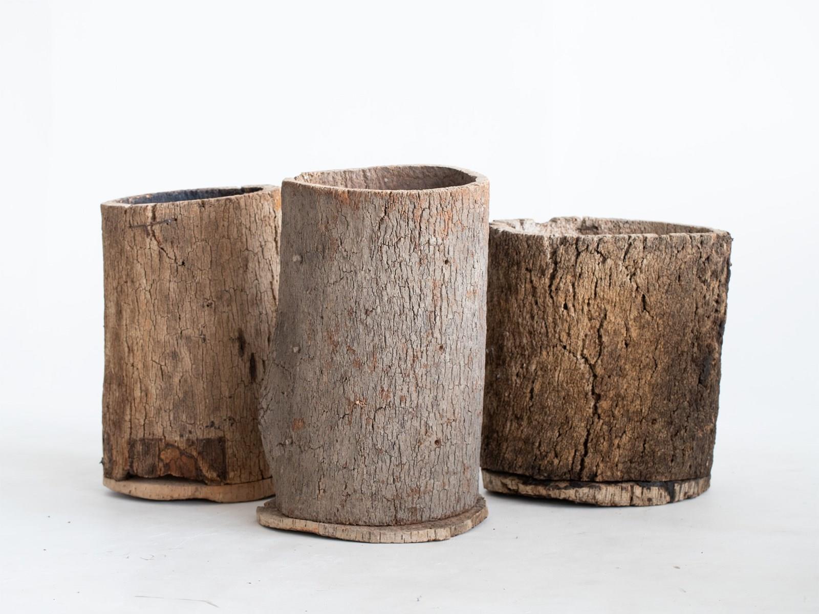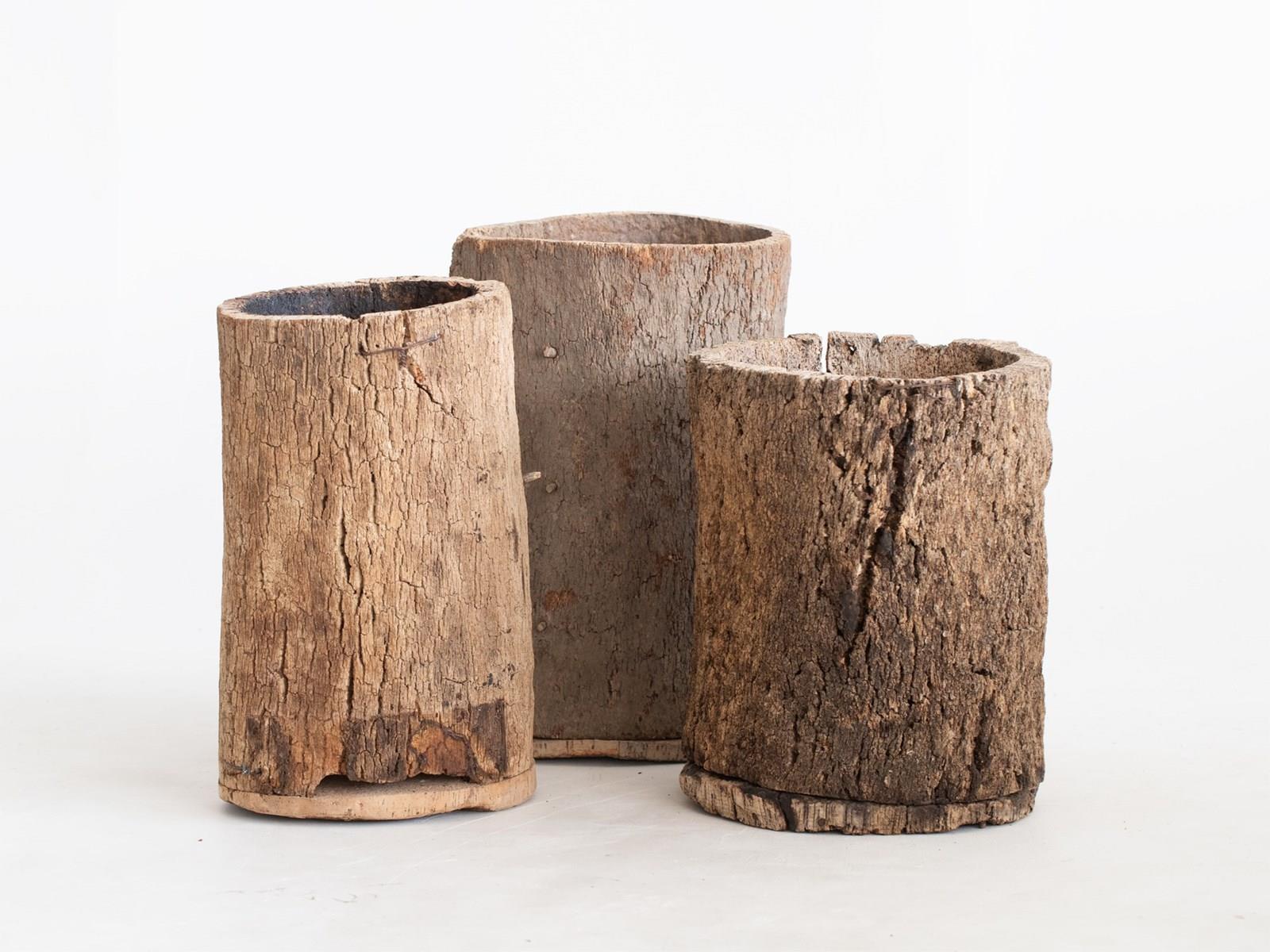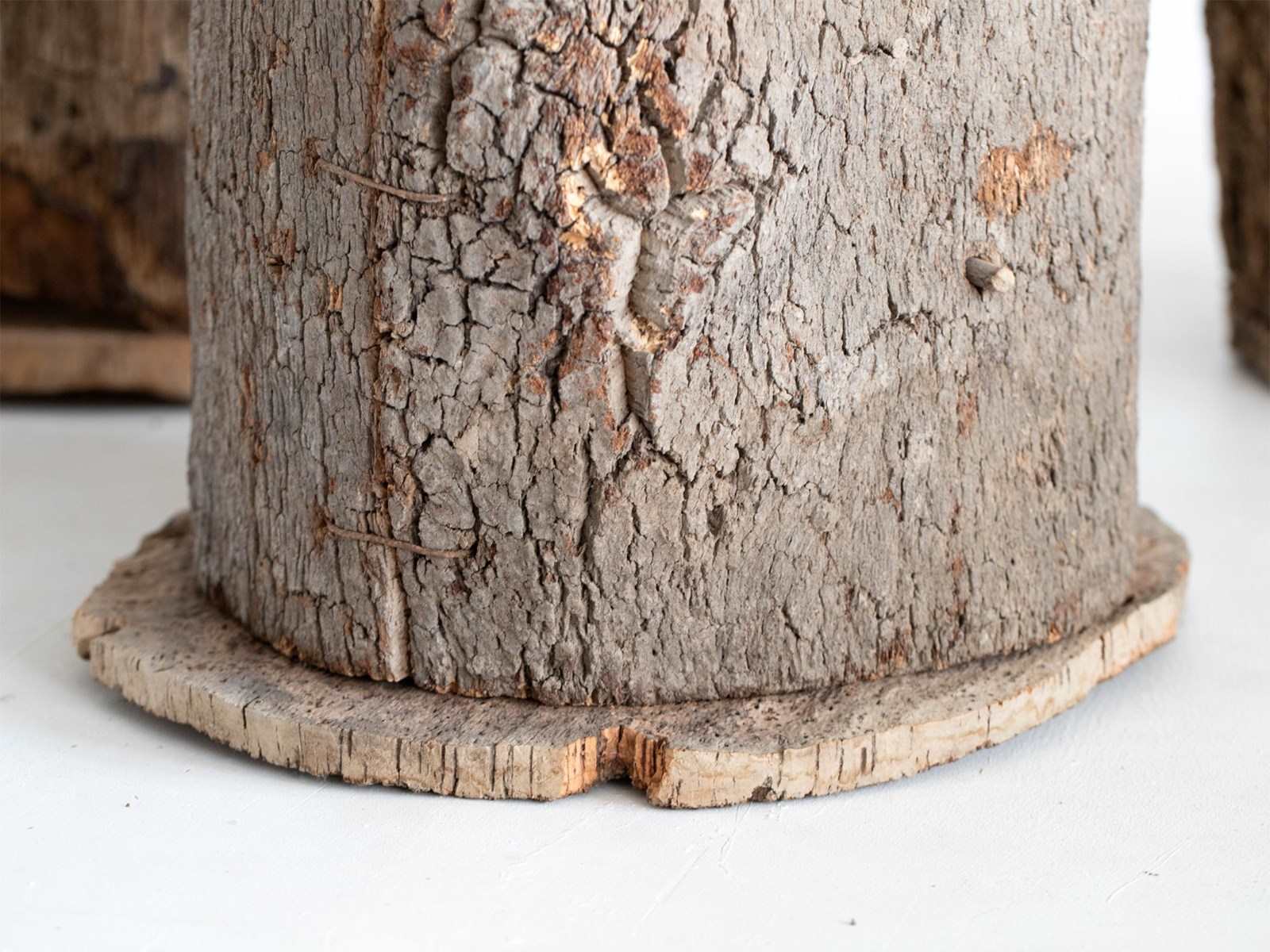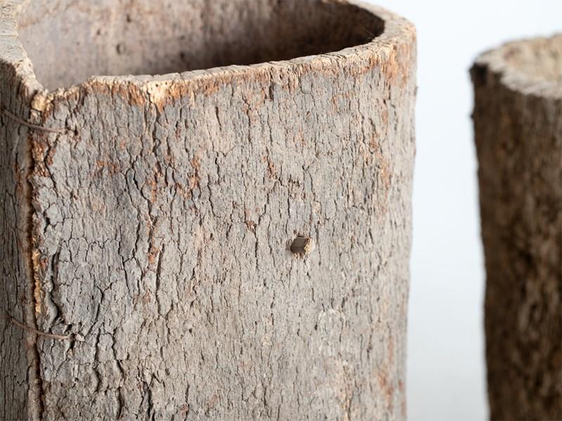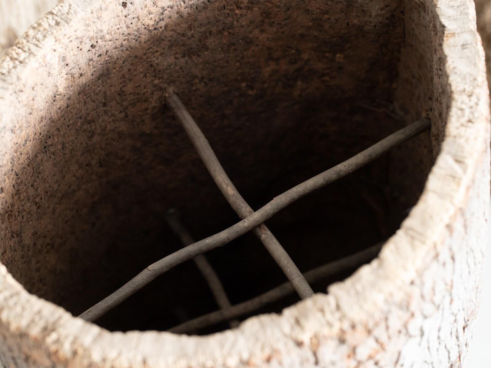 Two skeps (left and centre of photos) are partitioned with twigs with the possibility for use as stick stands, whilst the third skep (right of photos) is hollow.
