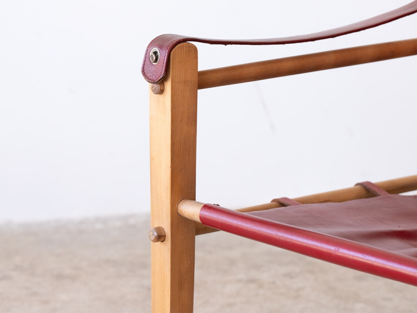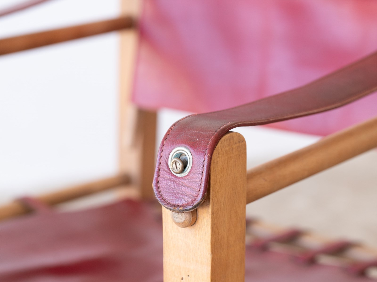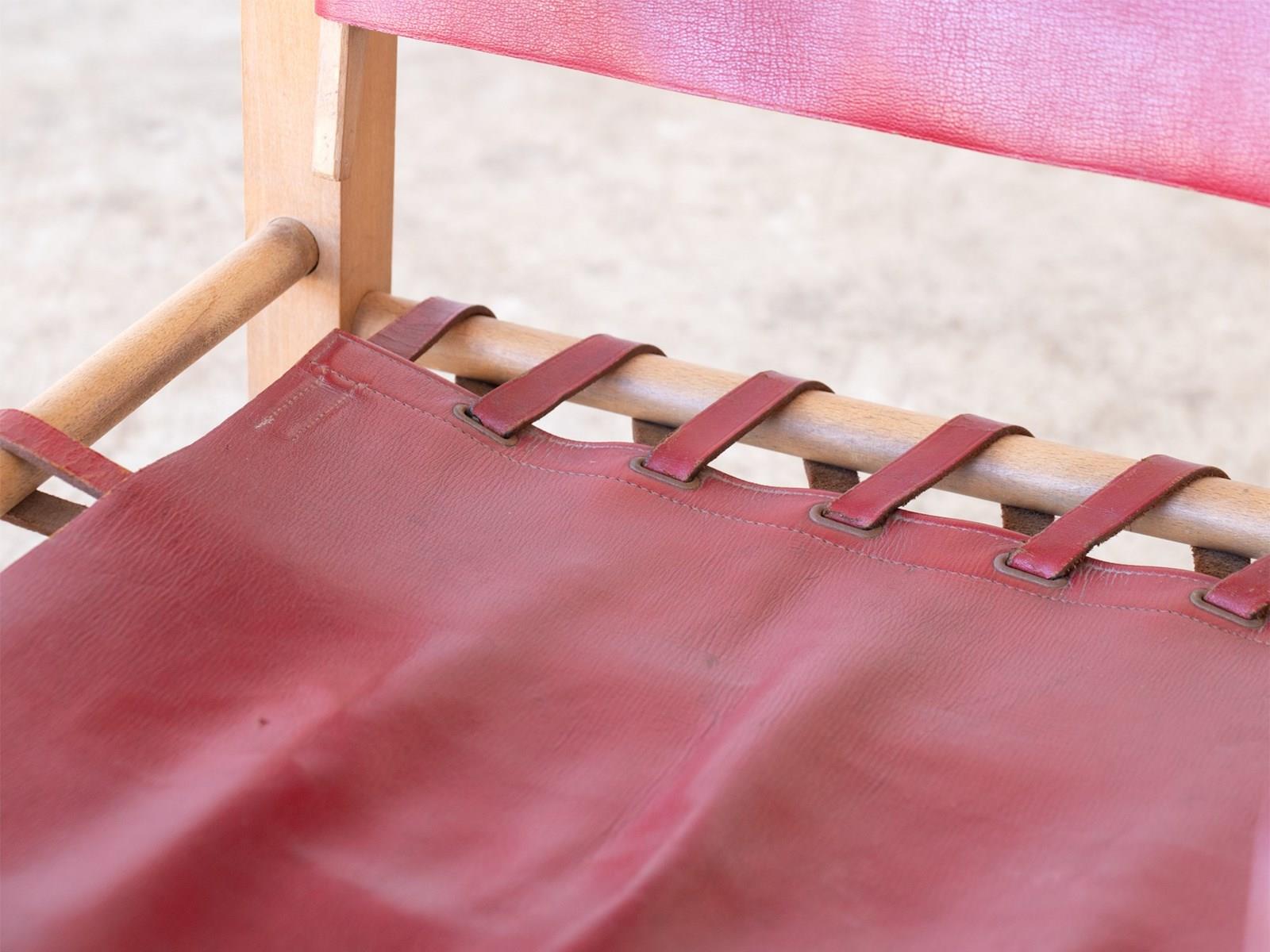 A red leather and beech safari chair by Sellerie Bouix. Tunisian, c. 1930.
