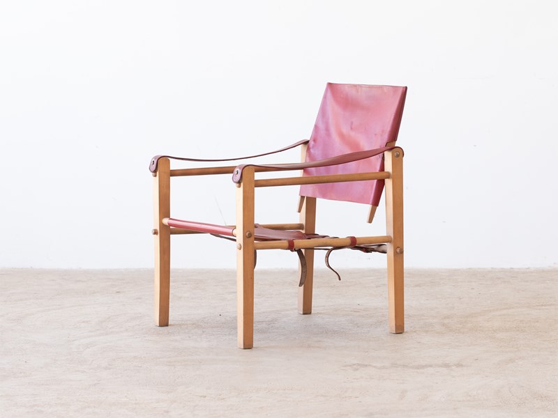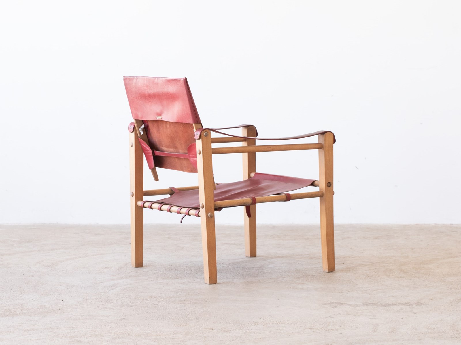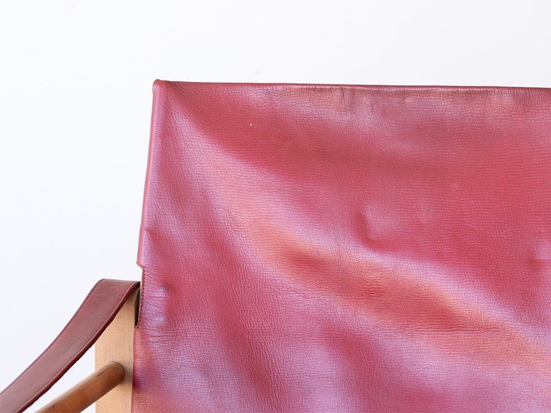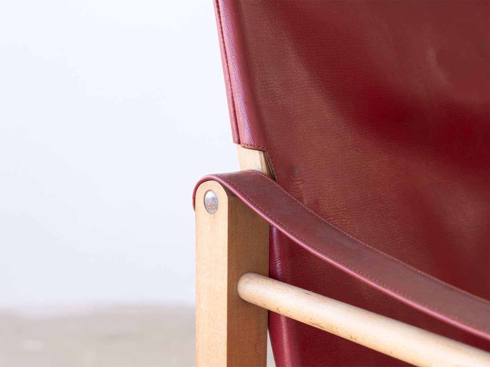 A red leather and beech safari chair by Sellerie Bouix. Tunisian, c. 1930.