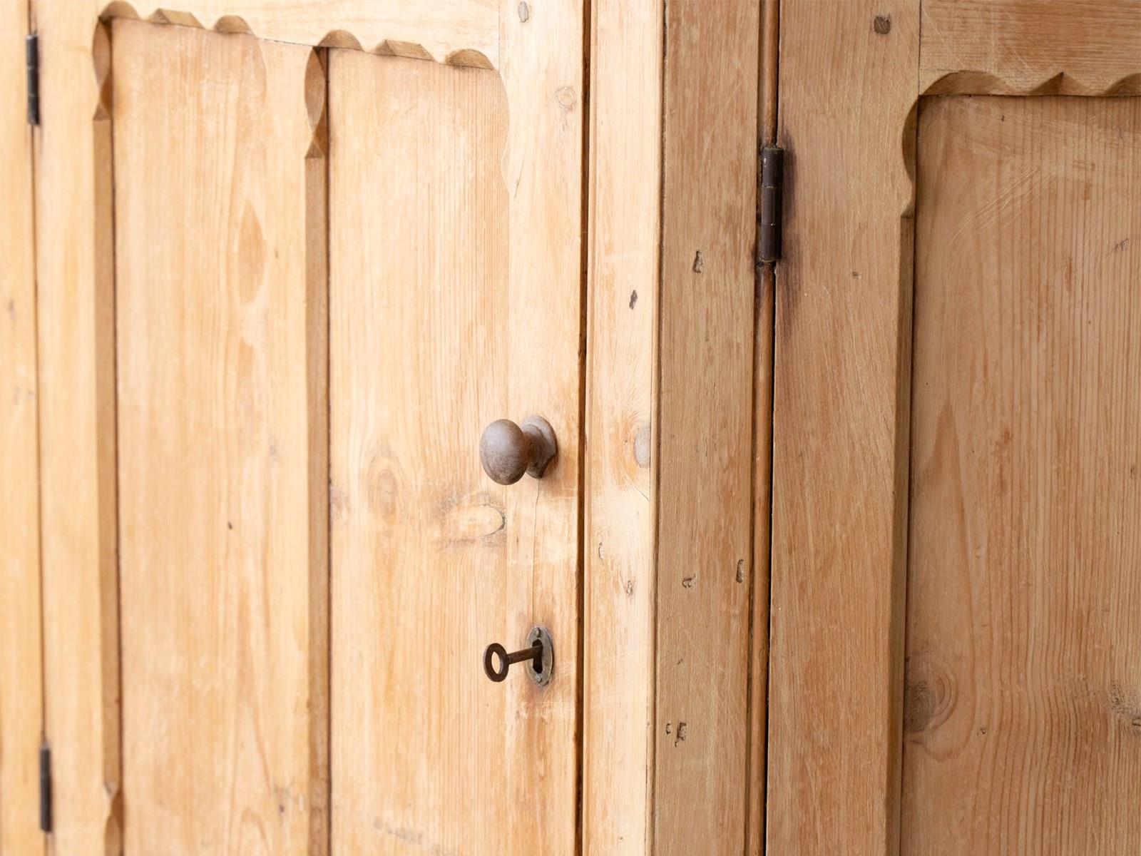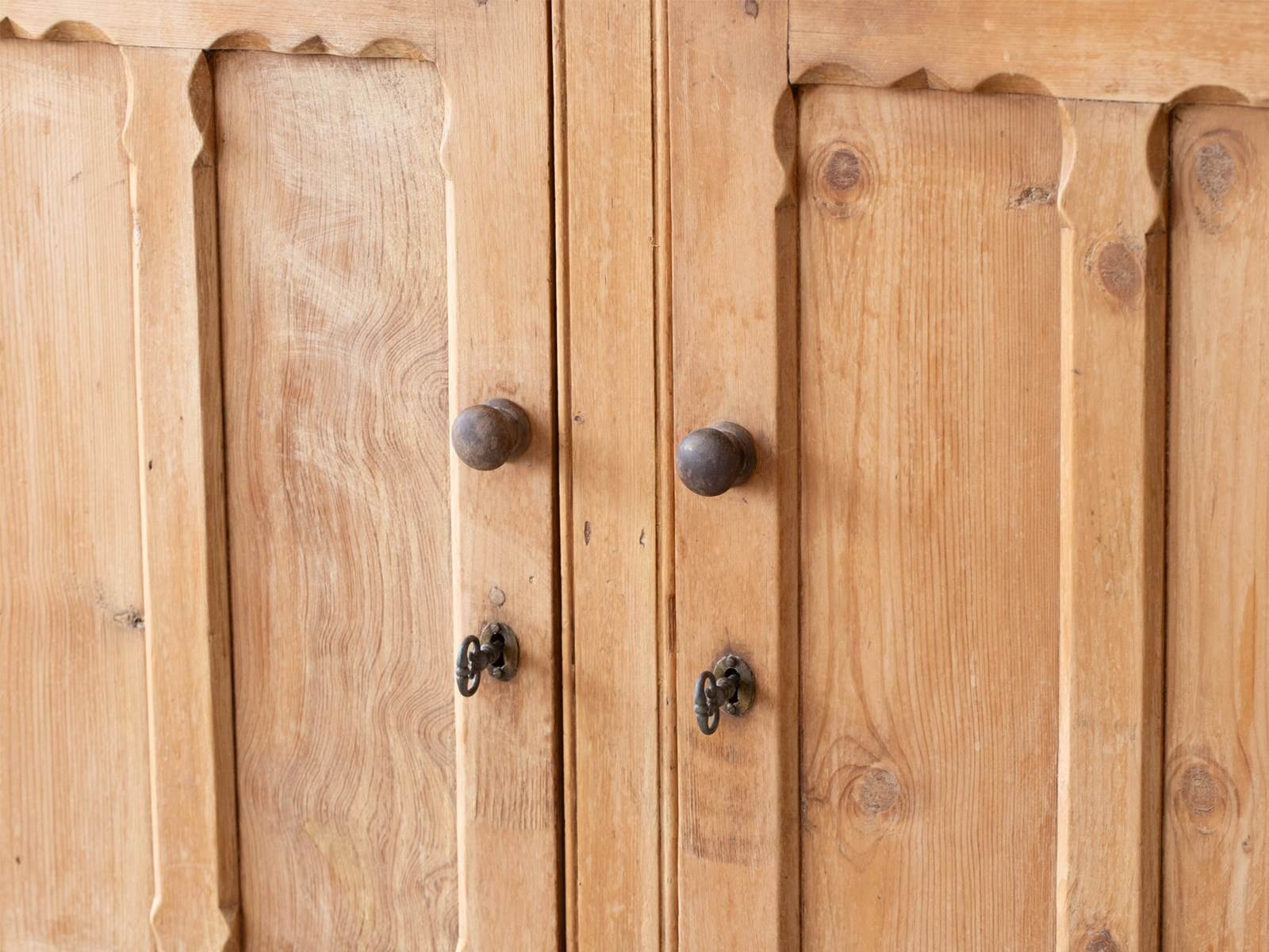 In good sturdy order with characterful wear throughout. Keys and working locks to the four cupboard doors.