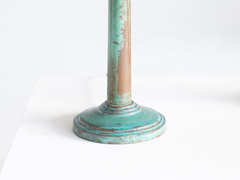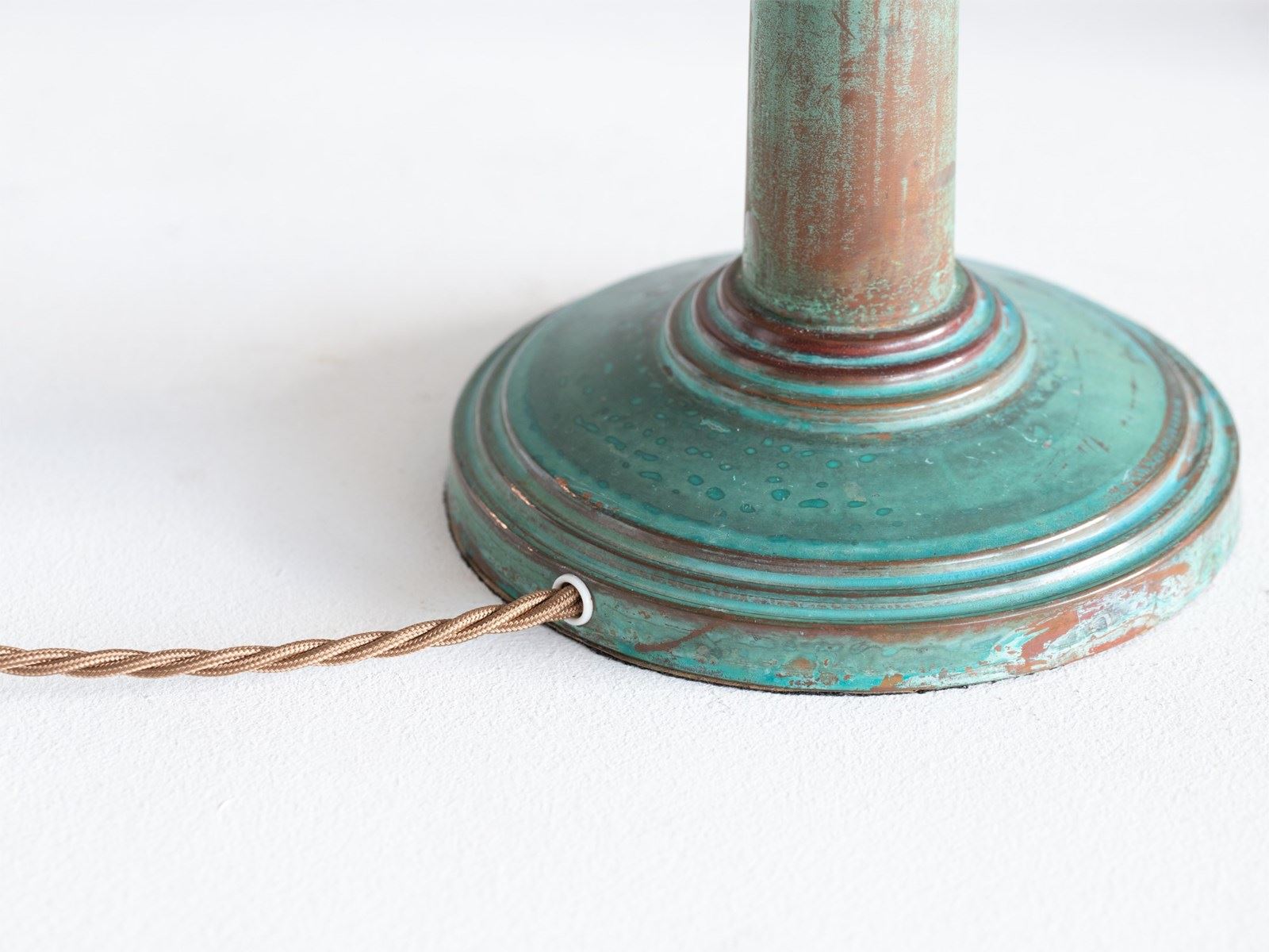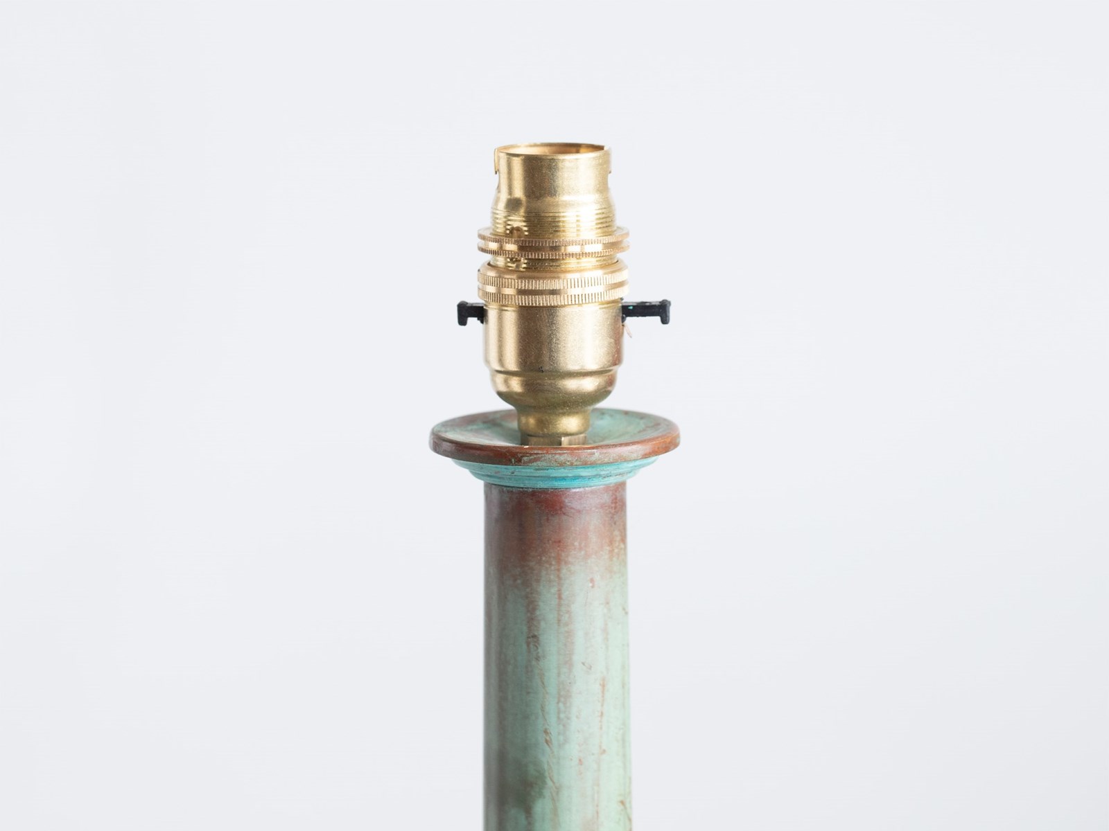A pair of copper table lamps with applied verdigris finish. English, c. 1990.