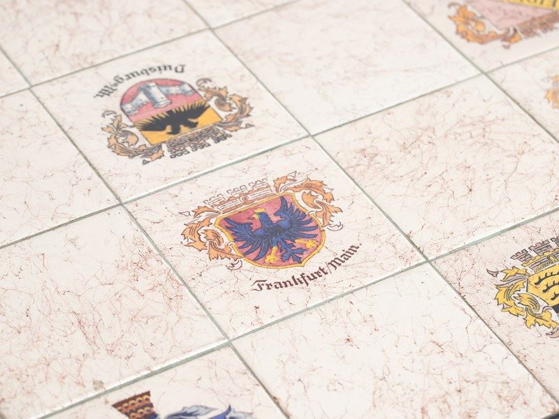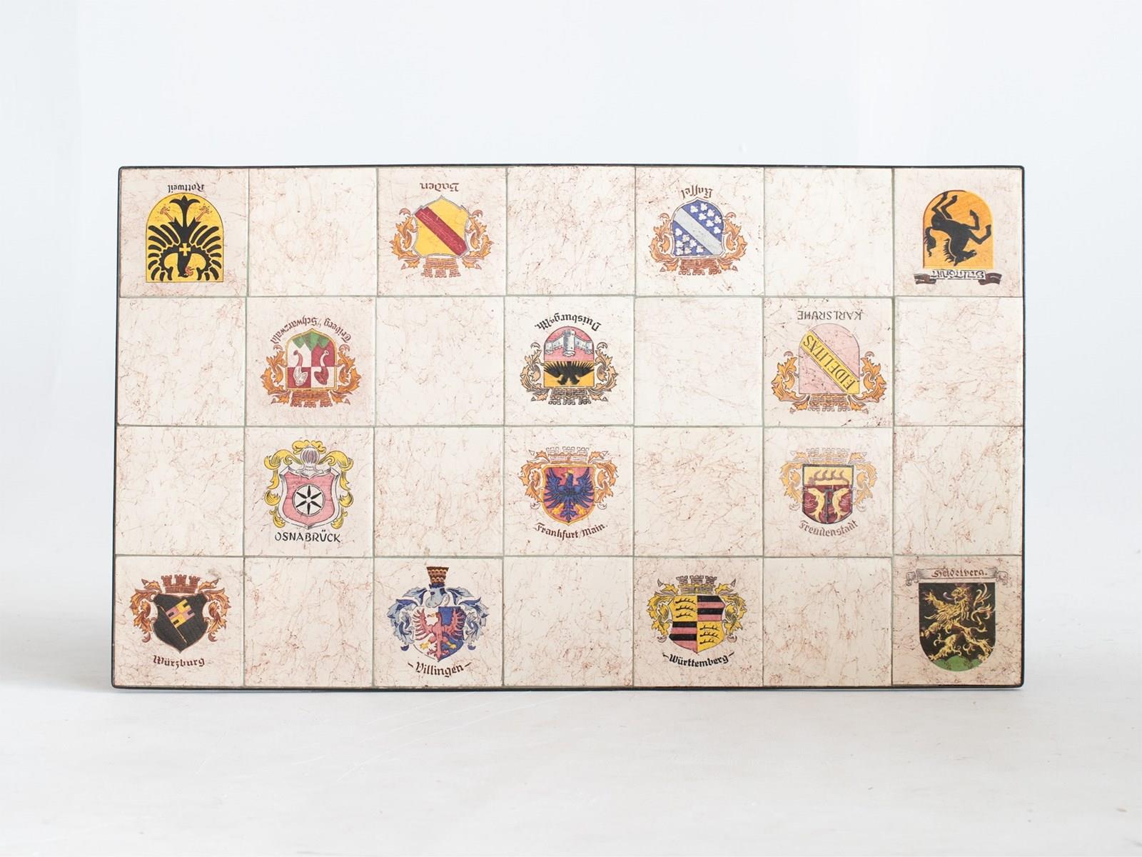 A West German heraldic coffee table, c. 1970s.