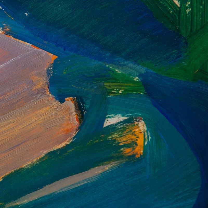 Influenced by Mediterranean abstract colourists, American post-war abstraction, and British modernist approaches, including affinities with colour-field painters and English figures such as Peter Layton.