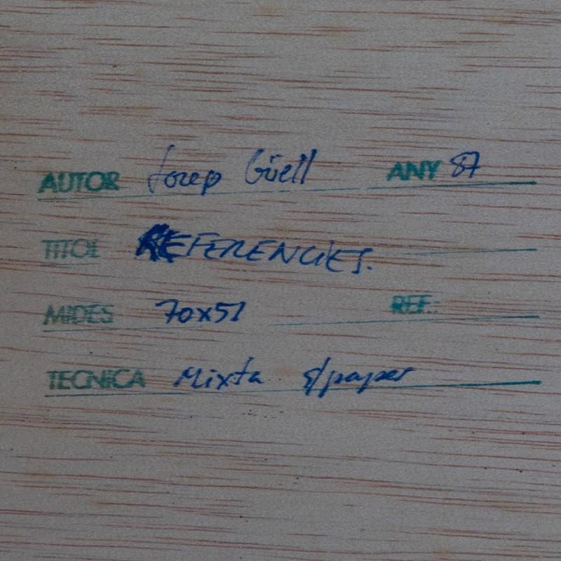 Josep Güell (Josep GÜELL (1945-2005) is noted for his emotionally charged mixed media abstractions emerging in the late 20th century.