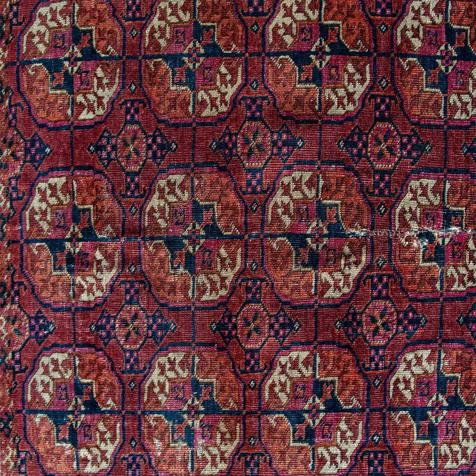 The weaving corresponds to the Ersari subgroup of Turkmen tribes active along the Amu Darya region (modern Turkmenistan–Uzbekistan) during the late 19th century. Workshops in this area produced some of the most recognisable Beshir rugs, identifiable by their finely drawn guls, saturated natural dyes, and distinctive border panels.