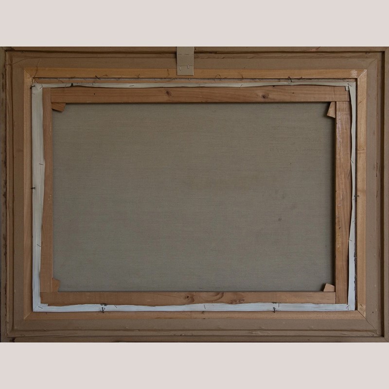 Presented in a substantial vintage wooden frame with metallic inner trim, showing minor age-related wear.